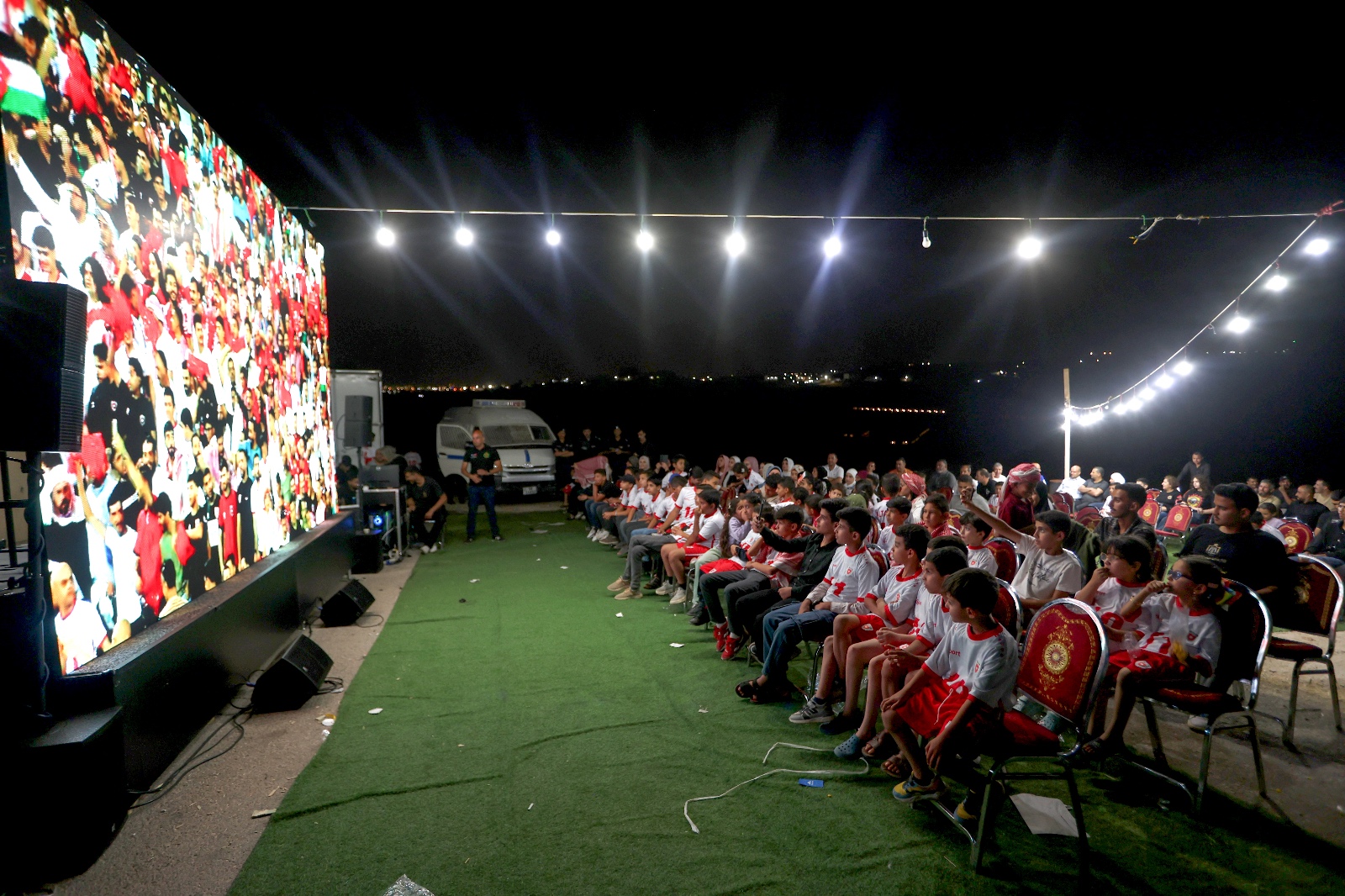 وتضمنت الفعالية نقلًا مباشرًا لمباراة المنتخب الوطني مع نظيره العراقي عبر شاشة عرض كبيرة جرى تجهيزها خصيصًا لسكان المنطقة، وسط أجواء مفعمة بالحماس والفخر، حيث عبّر الحضور عن اعتزازهم بإنجاز النشامى، وتفاعلوا بحماسة مع مجريات المباراة.