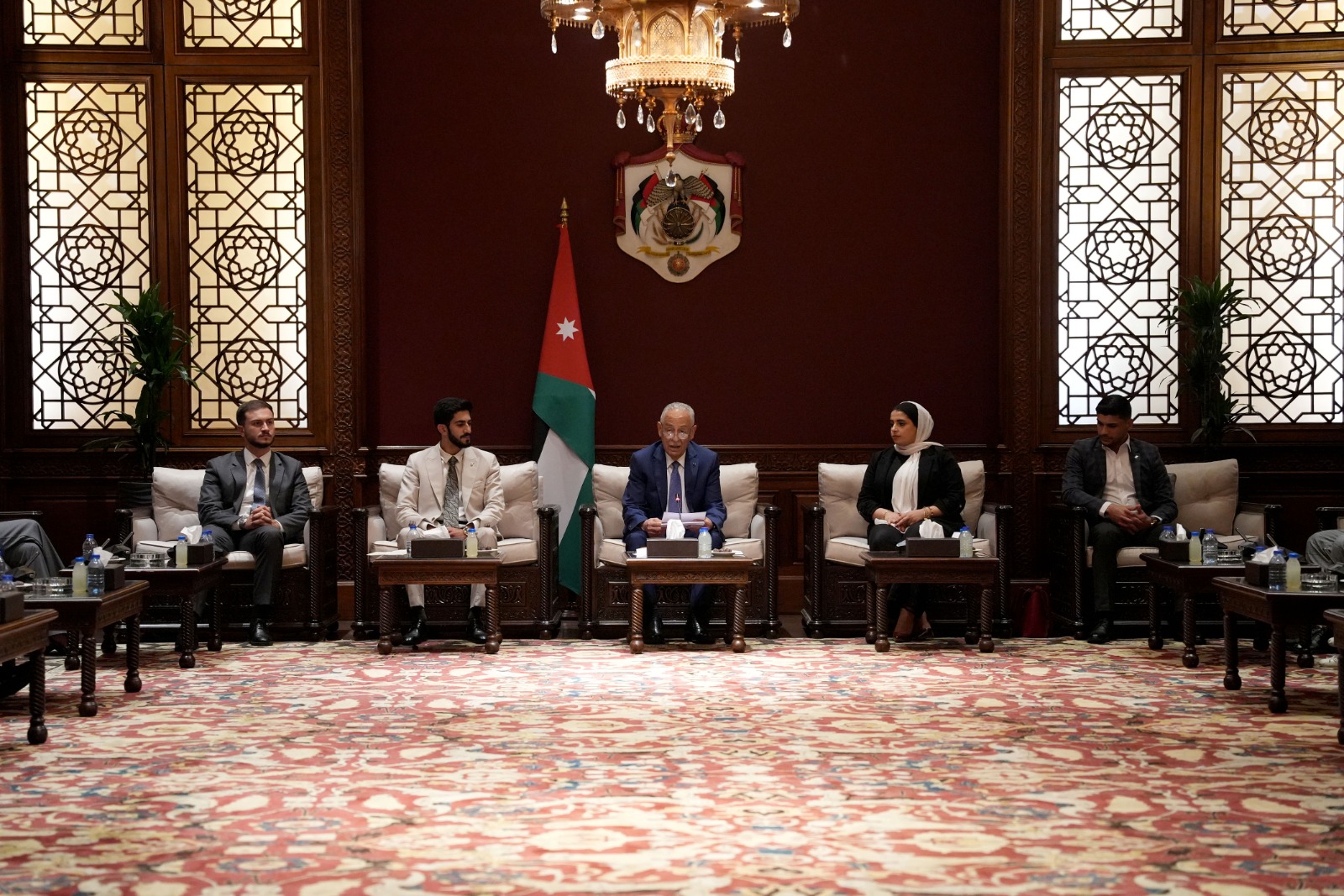 المستقل – التقى رئيس الديوان الملكي الهاشمي، يوسف حسن العيسوي، اليوم الأربعاء، وفدين في لقاءين منفصلين. ضم الوفد الأول ممثلين عن تجمع المتقاعدين العسكريين لمحافظة البلقاء، فيما ضم الوفد الثاني مجموعة من المحامين المتدربين وطلبة تخصص الحقوق. وقد حضر لقاء المتقاعدين العسكريين العميد الركن رعد العمايرة مدير المكتب العسكري الخاص لجلالة الملك.