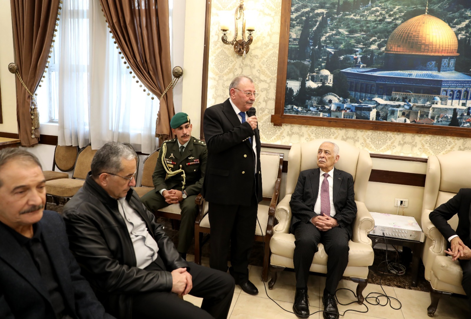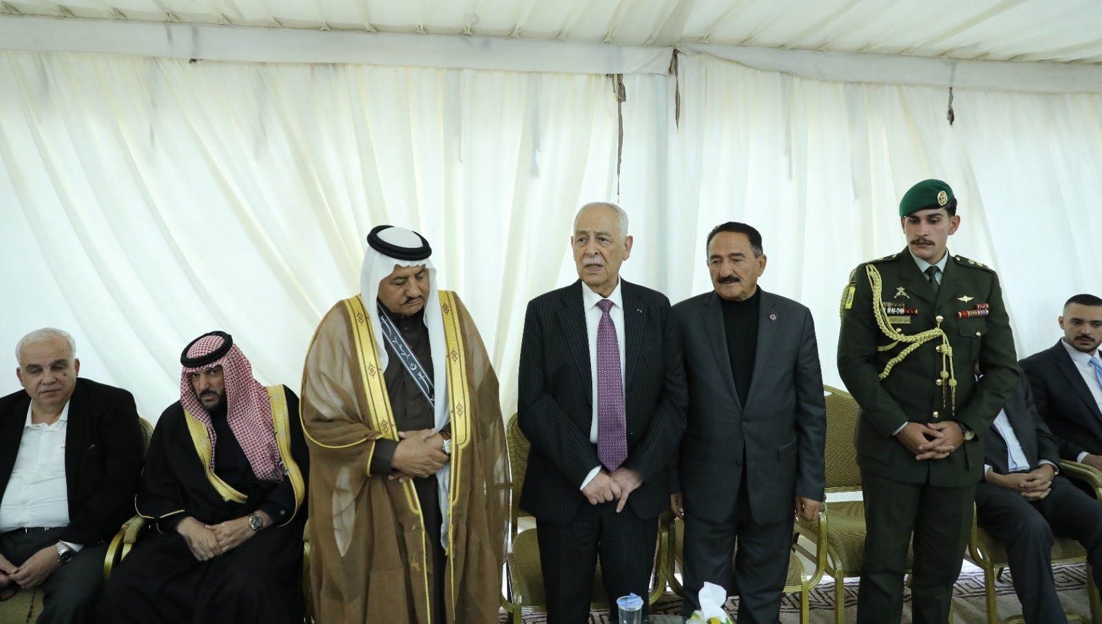 المستقل – مندوبا عن جلالة الملك عبدالله الثاني وسمو الأمير الحسين بن عبدالله الثاني، ولي العهد، قدم رئيس الديوان الملكي الهاشمي يوسف حسن العيسوي، اليوم الأربعاء، واجب العزاء إلى عشائر القاضي والشرايعة/عباد والمجالي ومنّاع.