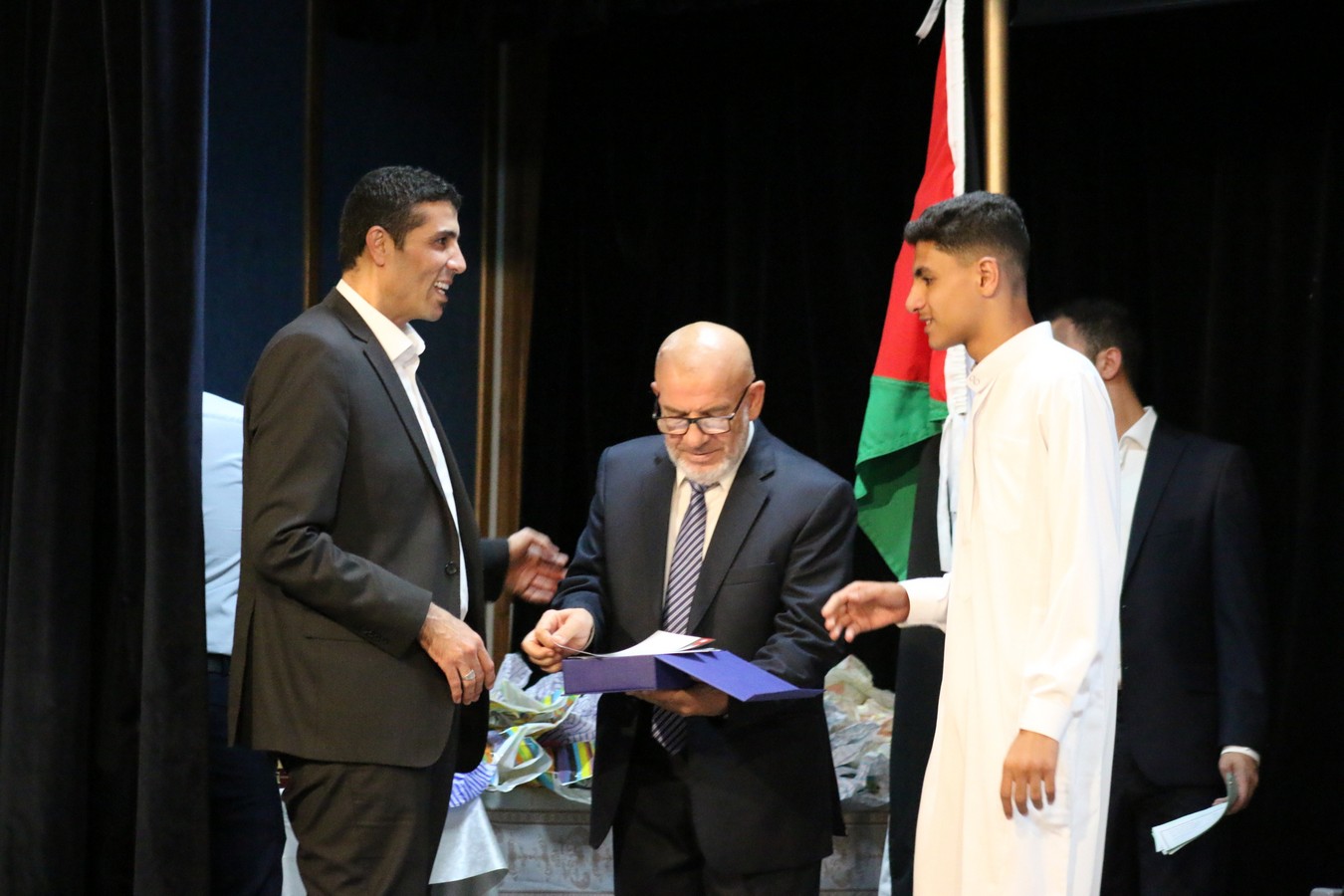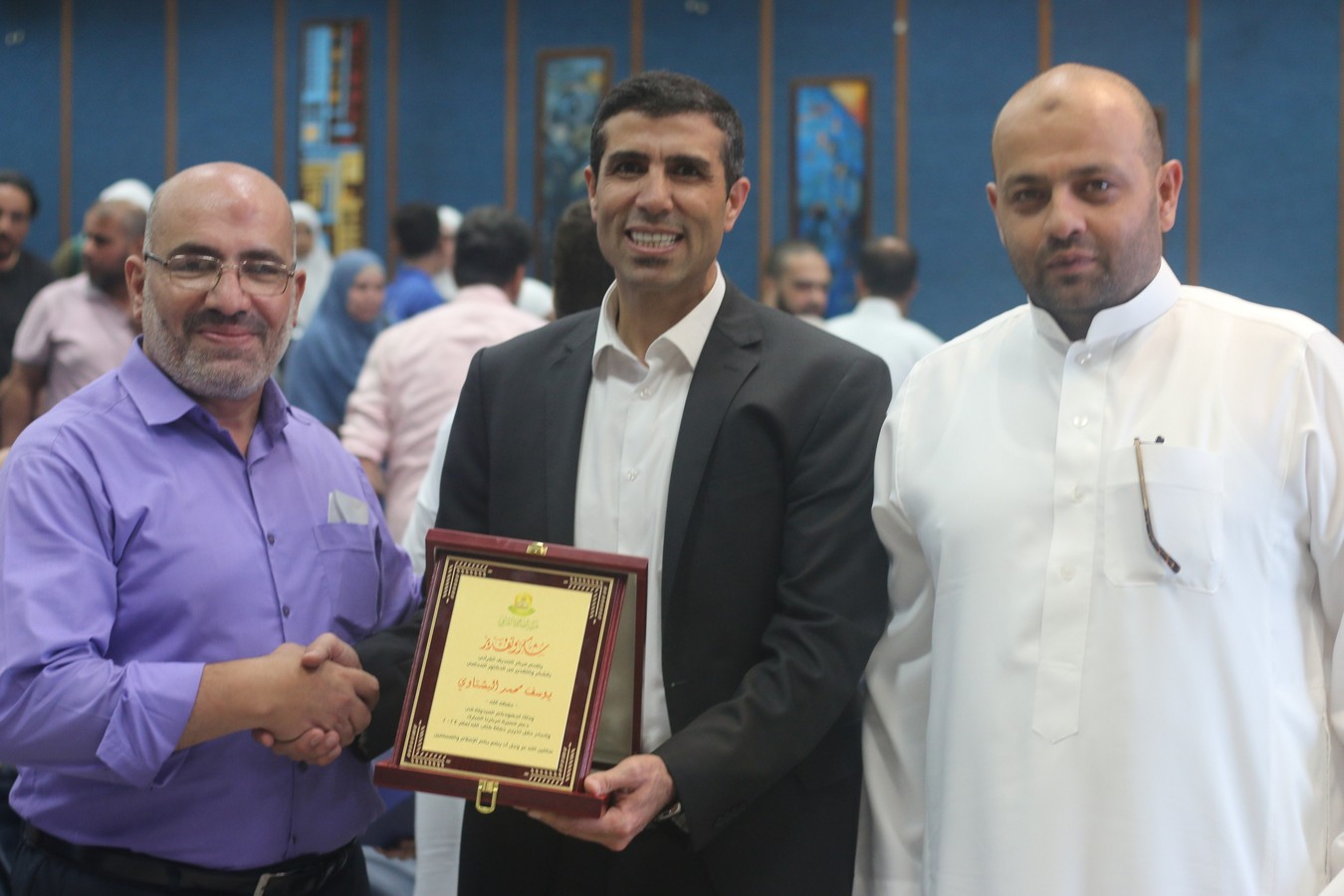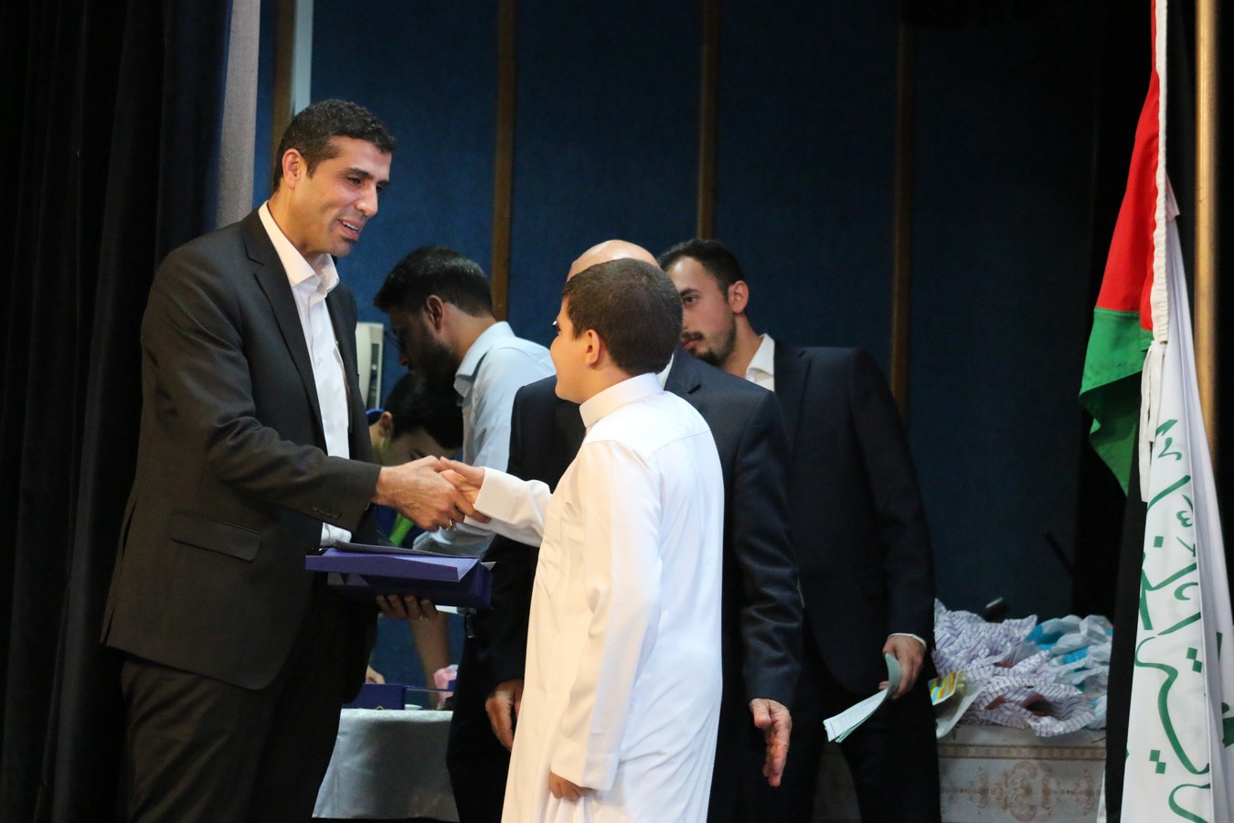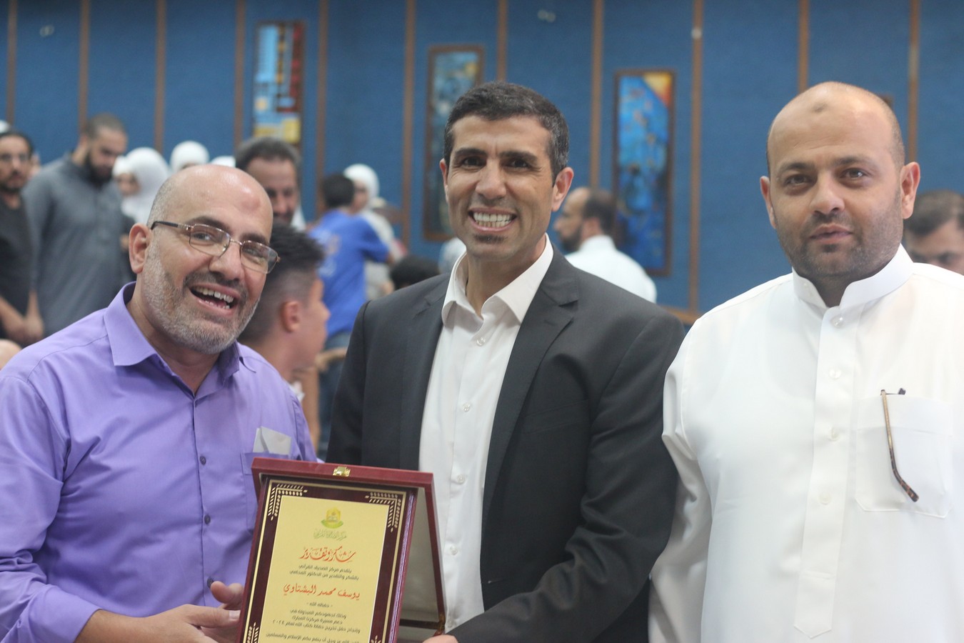 وفي ختام الحفل، سلم القنصل د. يوسف البشتاوي الطلبة الخريجين شهادات التخرج كما قدم لهم الدروع التذكارية والجوائز القيمة، احتفاءً بالإنجاز الذي حققوه والمتمثل بحفظ كتاب الله ، وبعد انتهاء الدكتور البشتاوي من تخريج الطلبة كرمته إدارة المركز بدرع تذكاري معبرين عن شكرهم وتقديرهم لرعايته هذا الحفل المميز .