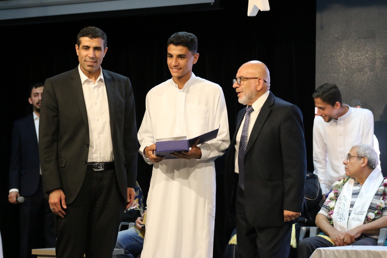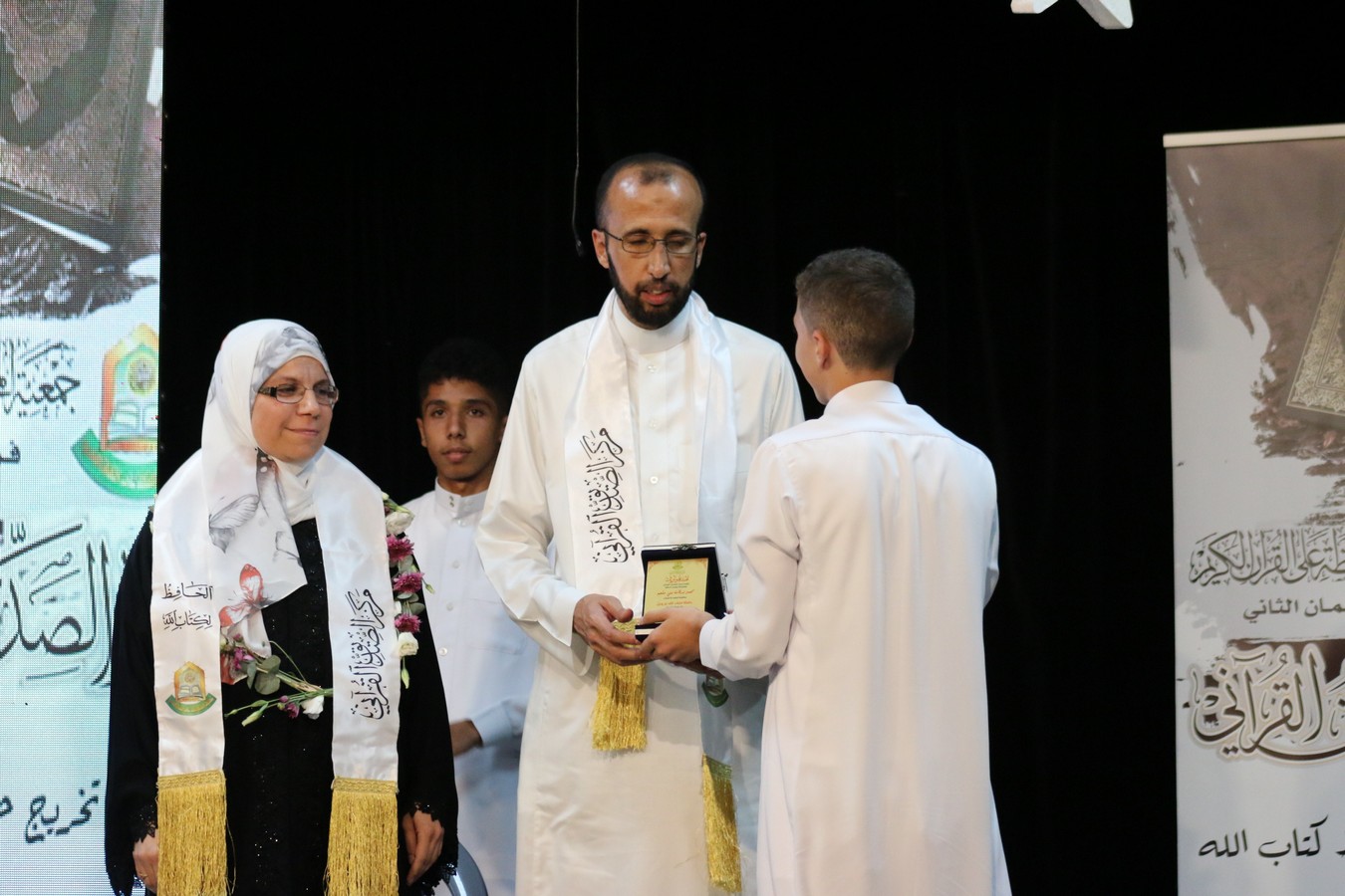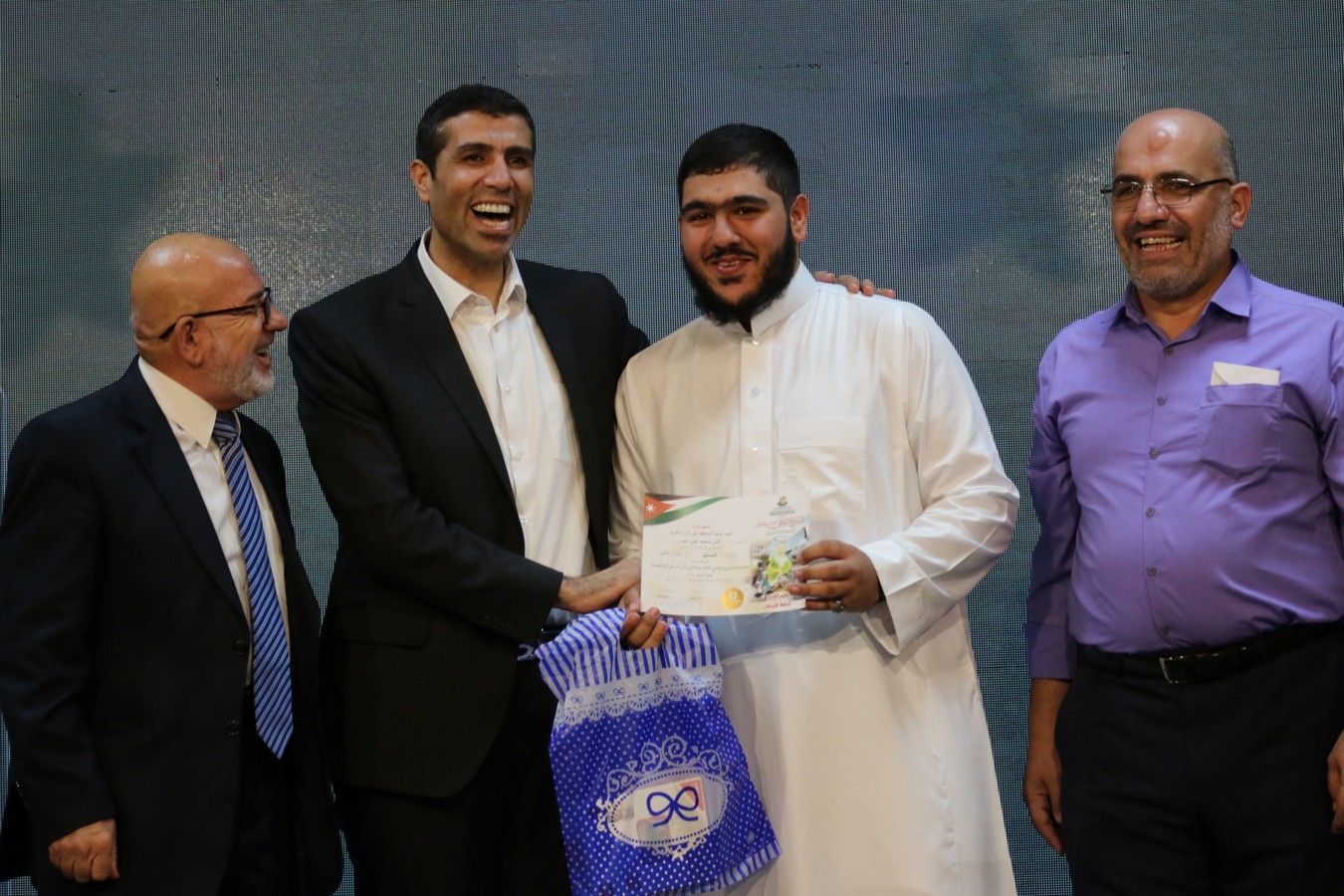 وفي ختام الحفل، سلم القنصل د. يوسف البشتاوي الطلبة الخريجين شهادات التخرج كما قدم لهم الدروع التذكارية والجوائز القيمة، احتفاءً بالإنجاز الذي حققوه والمتمثل بحفظ كتاب الله ، وبعد انتهاء الدكتور البشتاوي من تخريج الطلبة كرمته إدارة المركز بدرع تذكاري معبرين عن شكرهم وتقديرهم لرعايته هذا الحفل المميز .