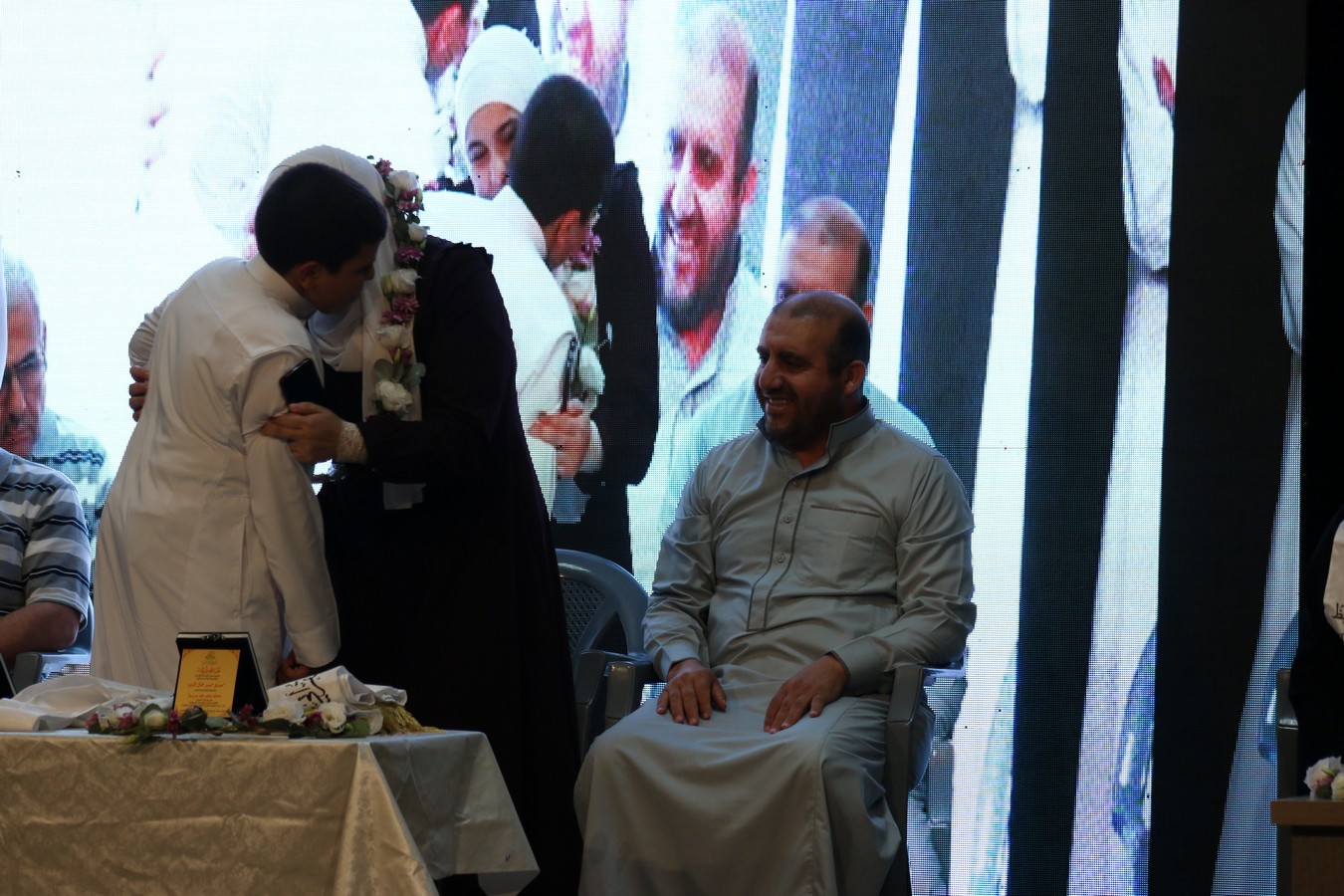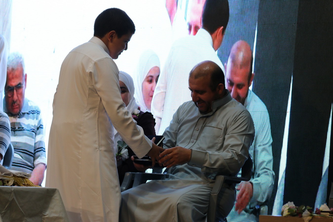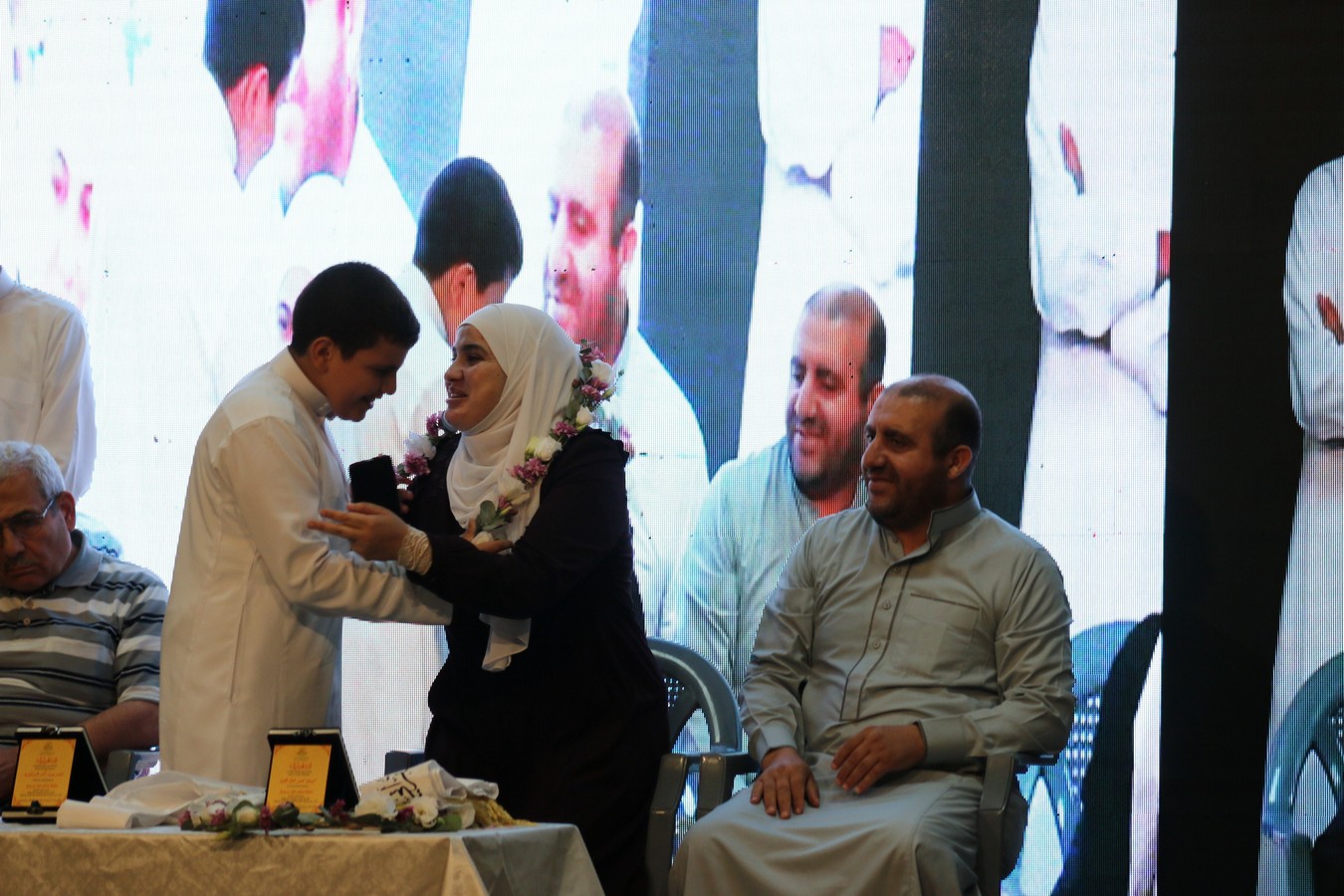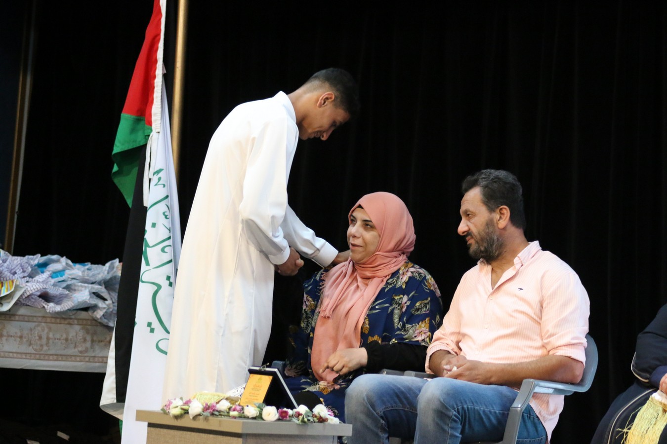 وفي ختام الحفل، سلم القنصل د. يوسف البشتاوي الطلبة الخريجين شهادات التخرج كما قدم لهم الدروع التذكارية والجوائز القيمة، احتفاءً بالإنجاز الذي حققوه والمتمثل بحفظ كتاب الله ، وبعد انتهاء الدكتور البشتاوي من تخريج الطلبة كرمته إدارة المركز بدرع تذكاري معبرين عن شكرهم وتقديرهم لرعايته هذا الحفل المميز .