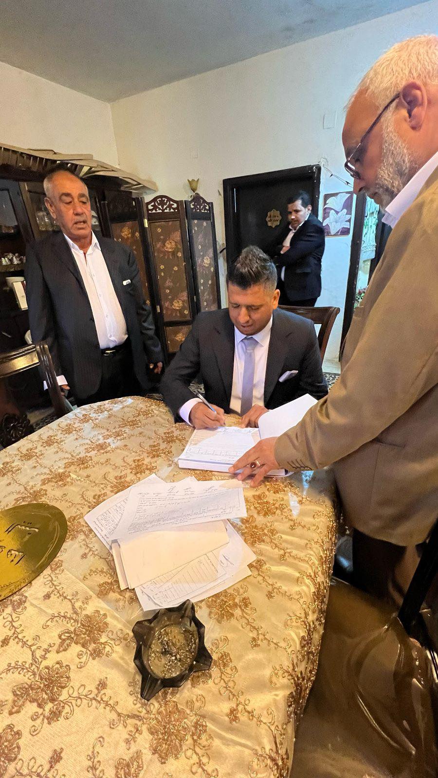 من القلــب إلى القلــب وبٲجمل المشاعر القلبية الصادقة وبكل ألوان الحب والاحترام ، يتقدم طارق خضراوي بأسمى عبارات التهاني والتبريكات إلى الصديق العزيز مؤمن راجح قطيش بمناسبة الخطوبة ، سائلاً الله العلي القدير ان يبارك له ويتمم فرحته بالهناء والسعادة .