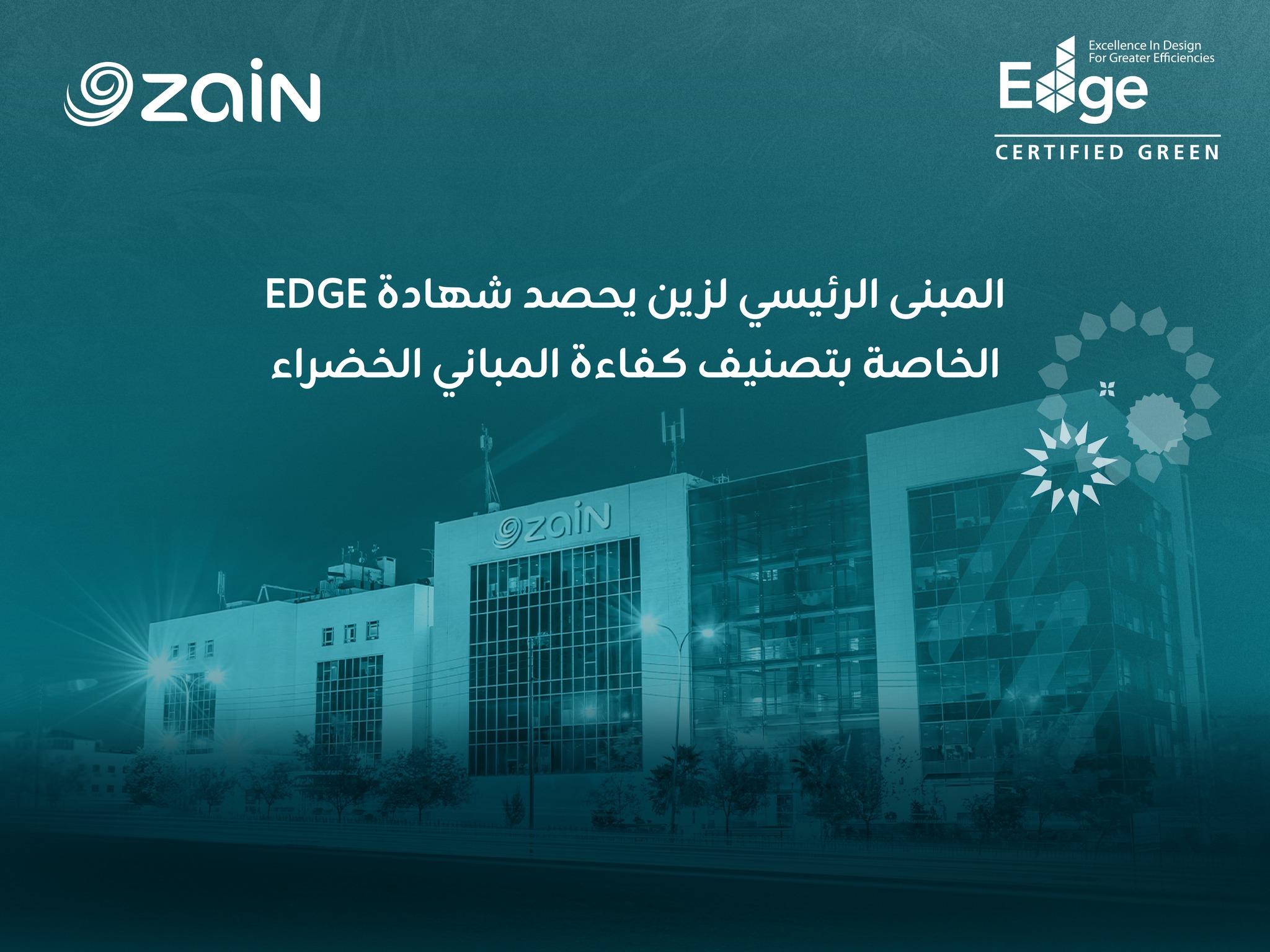 المستقل – تأكيداً على ريادتها في الاستدامة والتزامها الراسخ بالمساهمة في بناء مستقبل مُستدام للأجيال القادمة؛ حصلت شركة زين الأردن على شهادة المباني الخضراء (EDGE) (Excellence in Design for Greater Efficiencies) التي تمنحها مؤسسة التمويل الدولية ( IFC) التابعة لمجموعة البنك الدولي وبالتعاون مع ((GBCI لتصبح بذلك أول شركة اتصالات في المملكة تنال هذا الاعتماد الدولي المرموق.
