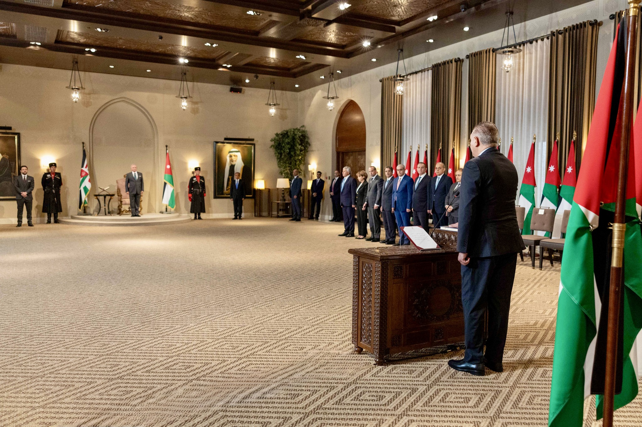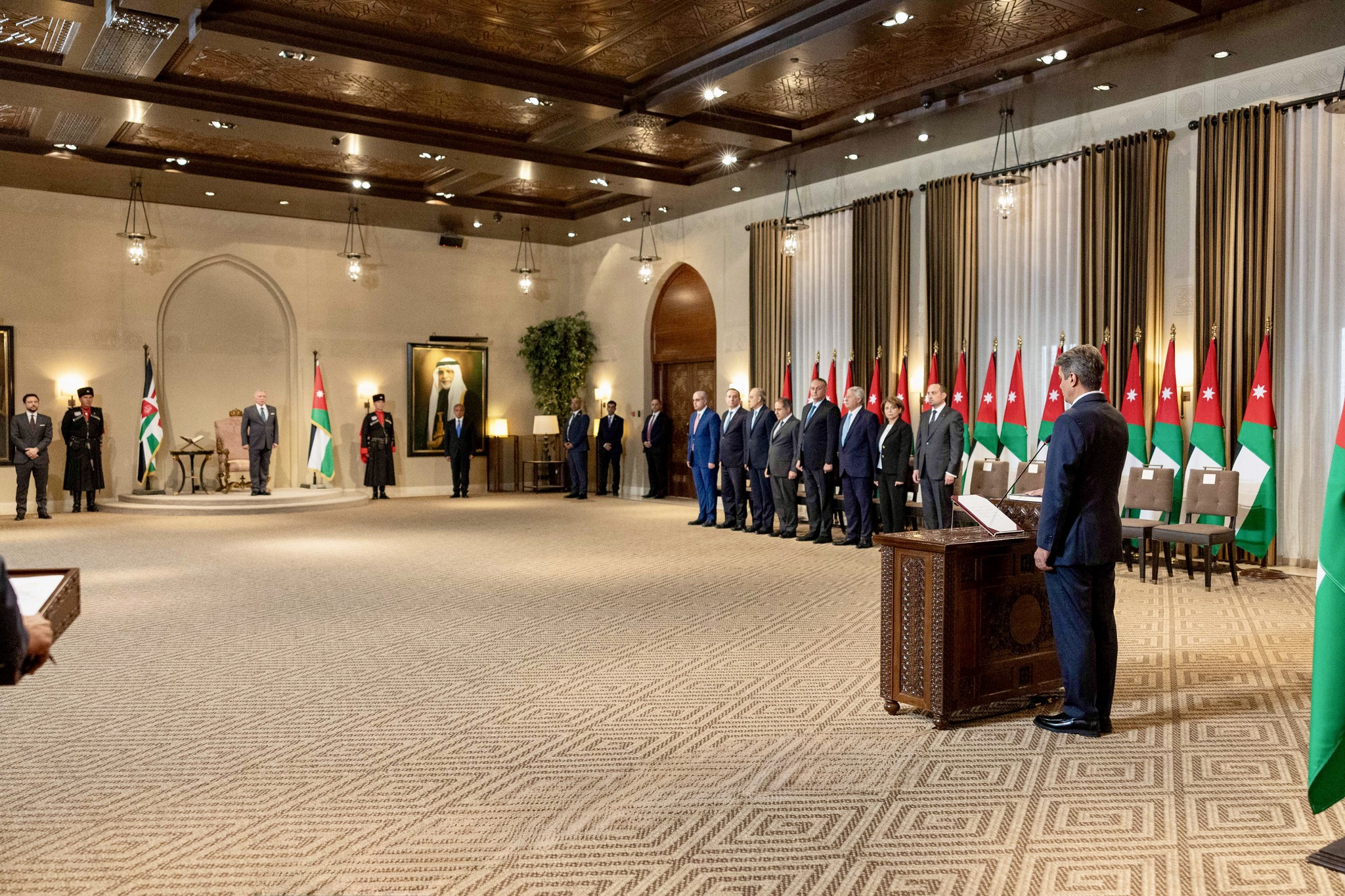 وأدى الوزراء اليمين الدستورية أمام جلالة الملك، في قصر الحسينية، بحضور سمو الأمير الحسين بن عبدالله الثاني ولي العهد.