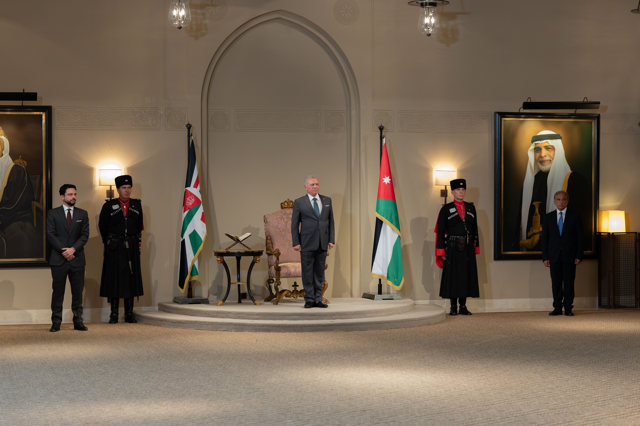 وحضر أداء اليمين الدستورية رئيس الوزراء الدكتور جعفر حسان، ورئيس الديوان الملكي الهاشمي يوسف حسن العيسوي.