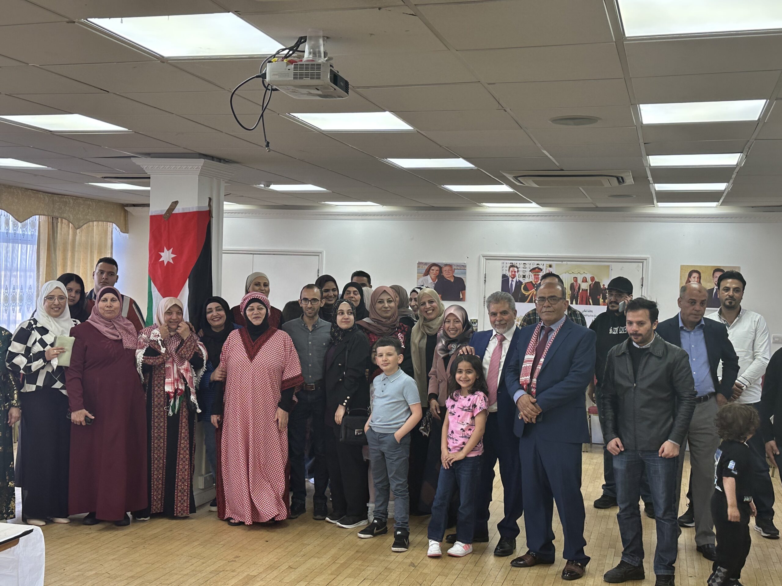 وعبّر الأردنيون المنضوين تحت المنتدى الأردني في بريطانيا وكذلك ملتقى “الأردنيون في بريطانيا” خلال الاحتفال عن فرحتهم بزفاف سموه الميمون وكذلك بعيد استقلال المملكة الـ77 وعيد الجيش والثورة التربية الكبرى.