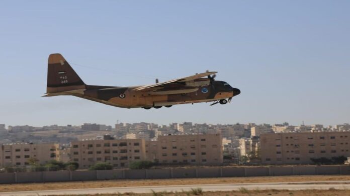 وتحمل الطائرة التي أرسلتها القوات المسلحة الأردنية بالتنسيق مع الهيئة الخيرية الأردنية الهاشمية مواد غذائية وطبية وإغاثية.