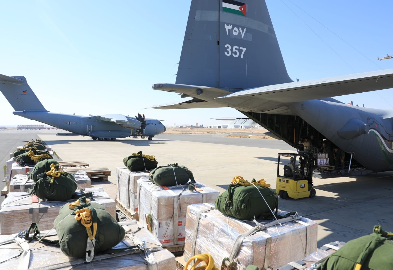 المستقل –  نفذت القوات المسلحة الأردنية، اليوم الاحد، عملية إنزال جوي إلى قطاع غزة، شاركت في العملية طائرات سلاح الجو الملكي الأردني وكل من جمهورية ألمانيا الاتحادية ودولة الإمارات العربية المتحدة وجمهورية اندونسيا، حيث تم إسقاط نحو (41) طناً من المواد الغذائية والإغاثية داخل القطاع.