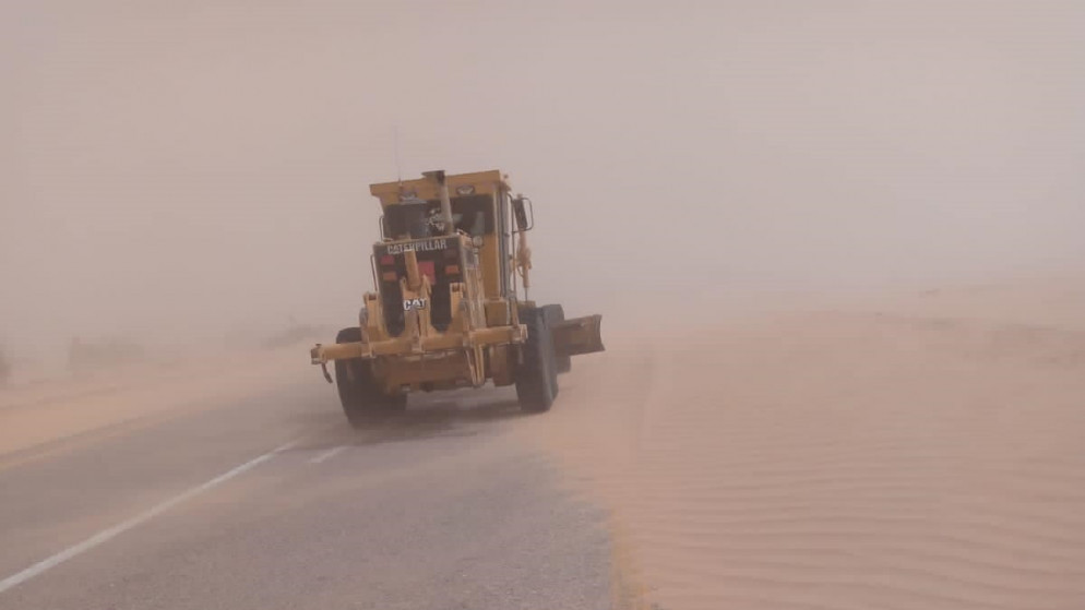 الأشغال تتعامل مع تجمع للرمال على طريق وادي عربة