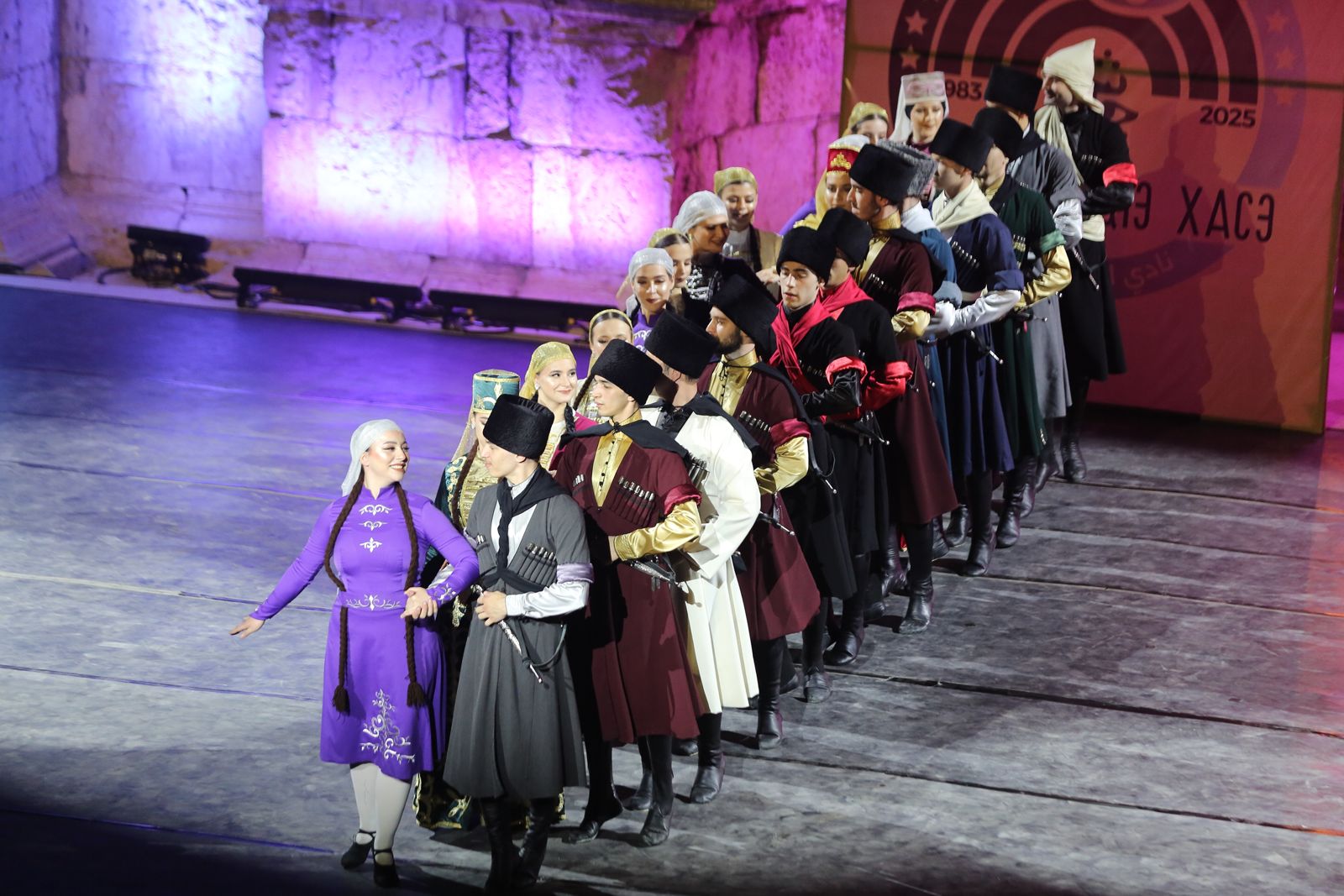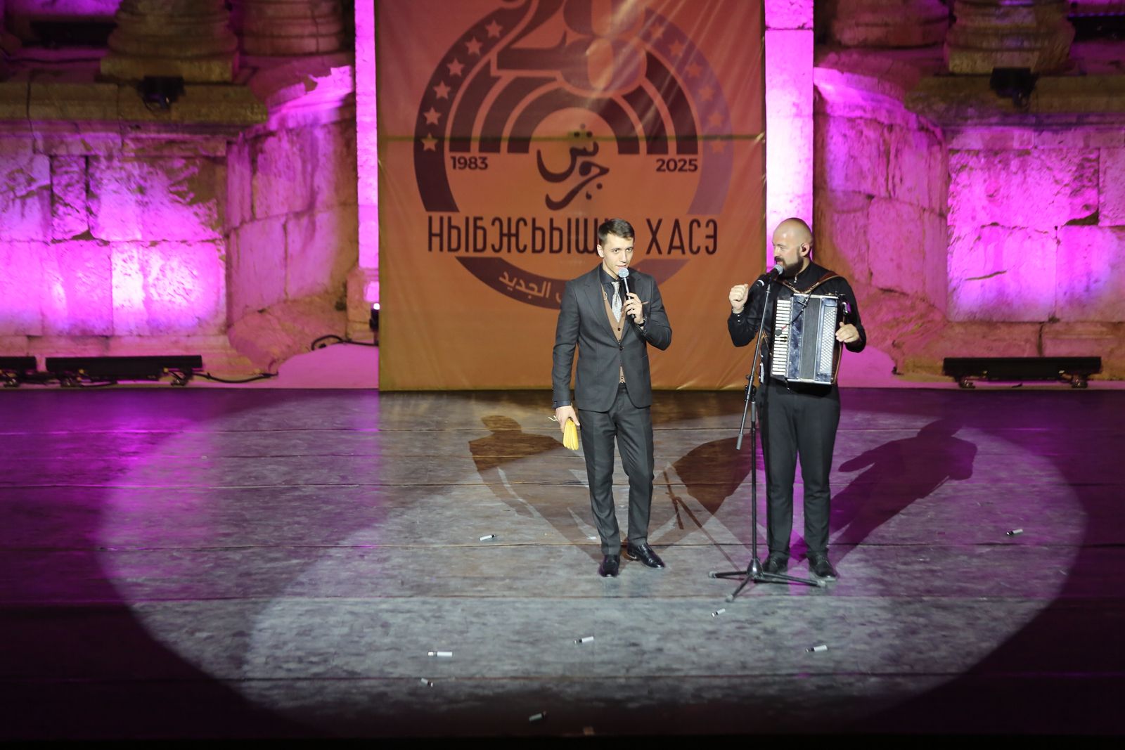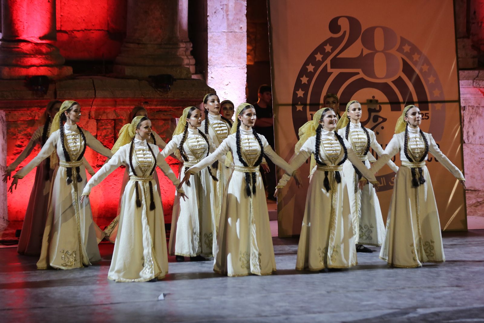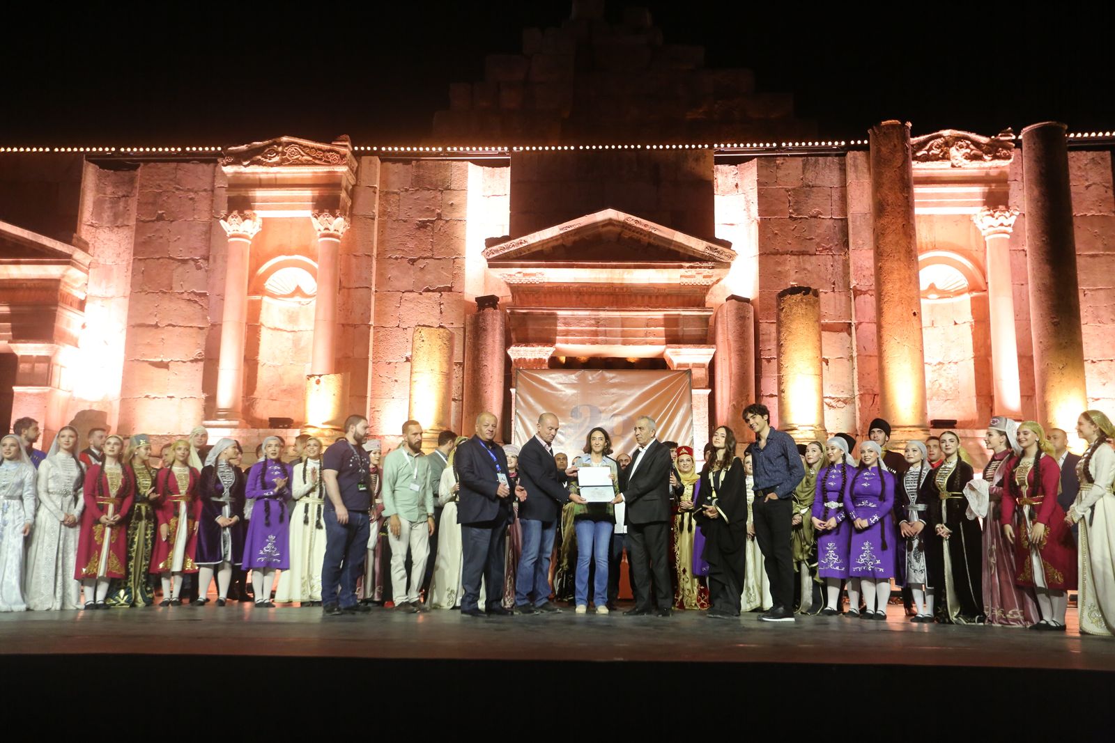 قال عريف الحفل : نلتقي اليوم في جرش… حيثُ لا يكون اللقاءُ مجرّدَ عرض، بل صدى لذاكرةٍ حَمَلَتها القلوبُ من القفقاس، ونسجتها الأرواح حبًّا على أرض الأردن، فامتزجت الجذورُ بالمكان، واستقرت في قلوب الناس، لتكون فرقةُ الجيل الجديد ترجمةً حيةً لإرثٍ خالد يعيش في الوجدان، ولحناً يَستمر في سردِ المسيرة..
