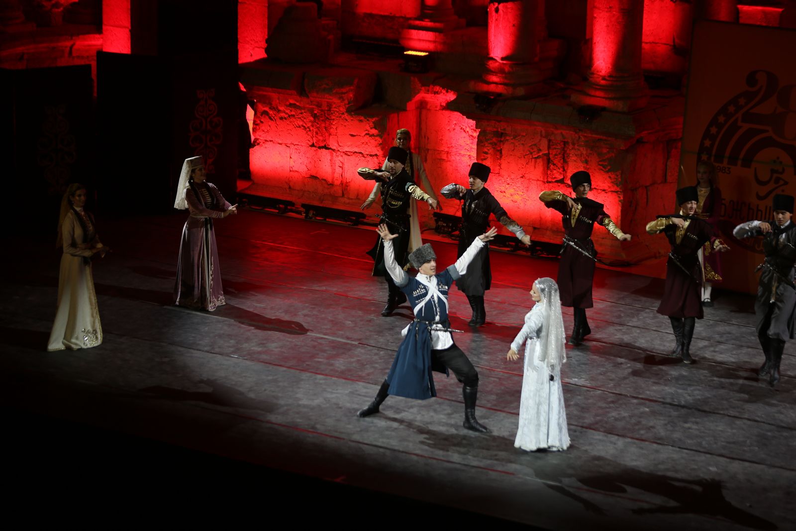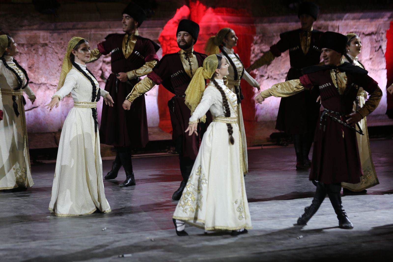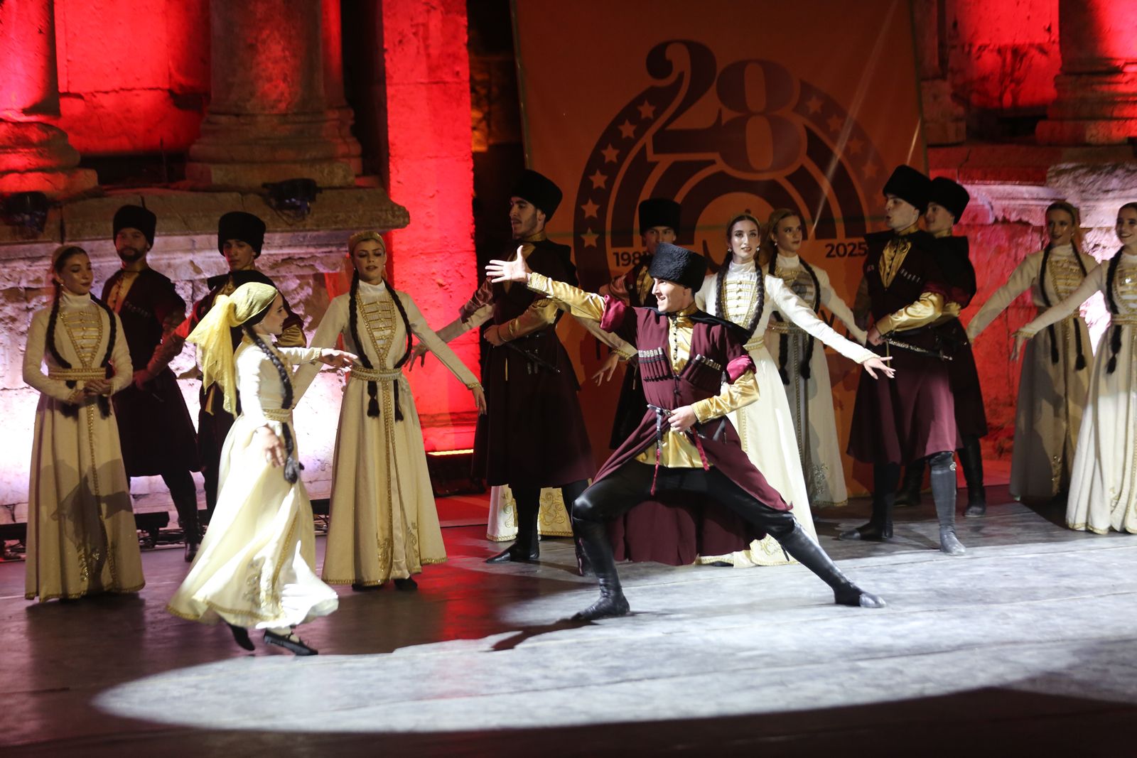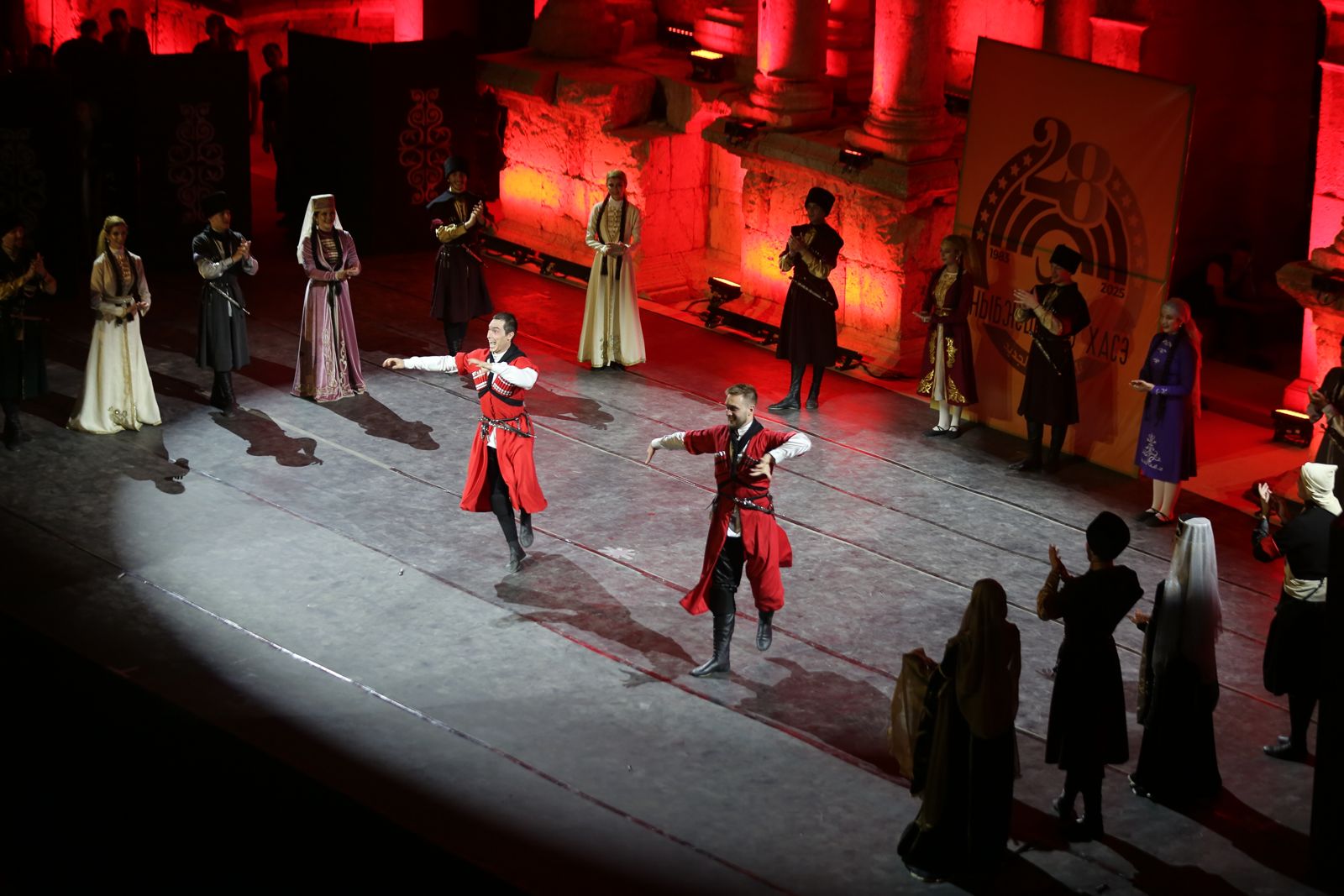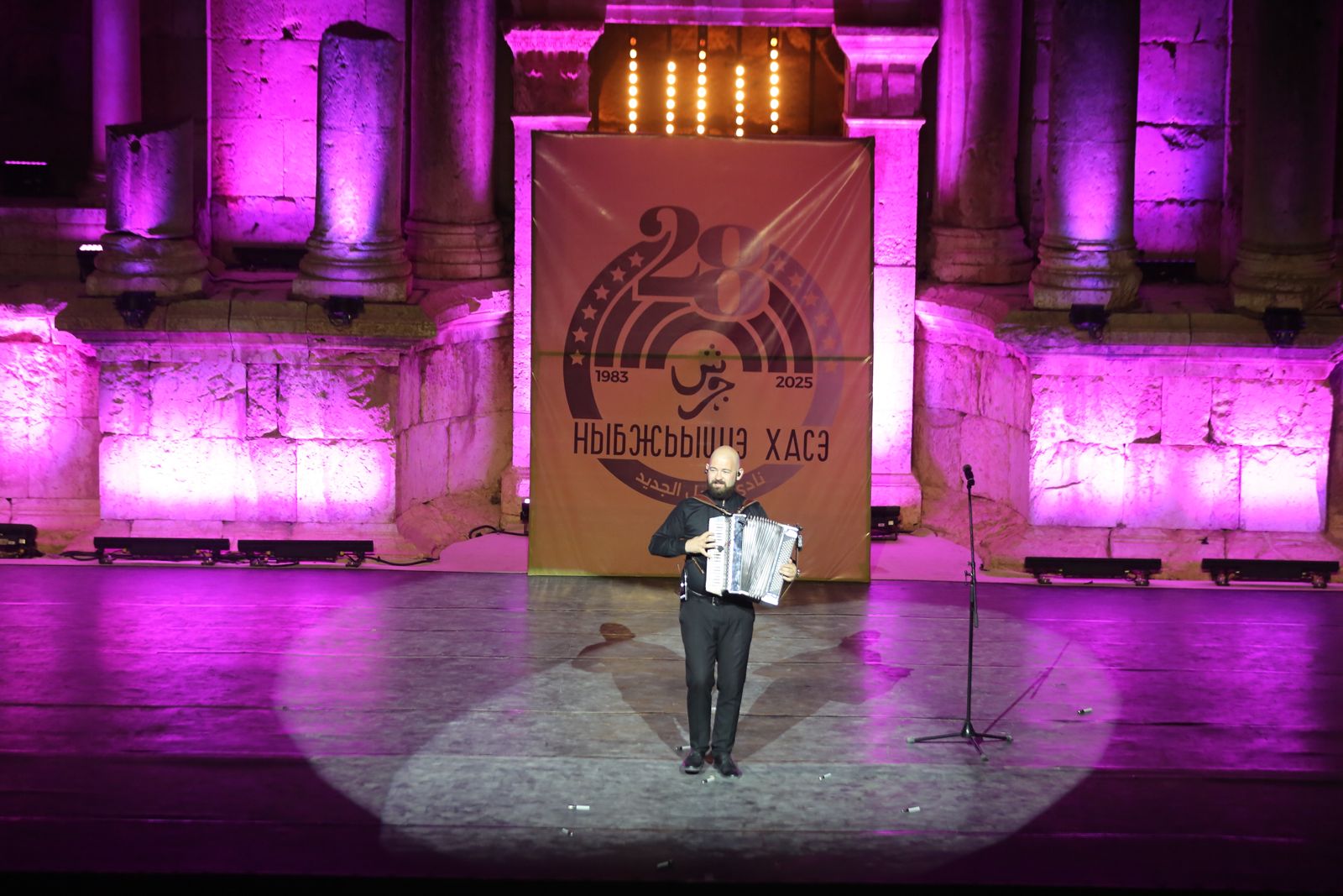 قال عريف الحفل : نلتقي اليوم في جرش… حيثُ لا يكون اللقاءُ مجرّدَ عرض، بل صدى لذاكرةٍ حَمَلَتها القلوبُ من القفقاس، ونسجتها الأرواح حبًّا على أرض الأردن، فامتزجت الجذورُ بالمكان، واستقرت في قلوب الناس، لتكون فرقةُ الجيل الجديد ترجمةً حيةً لإرثٍ خالد يعيش في الوجدان، ولحناً يَستمر في سردِ المسيرة..