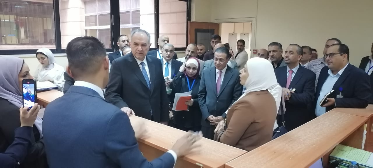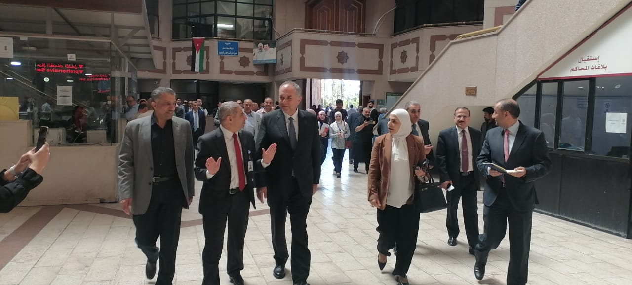 ورافق وزير العدل أمين عام الوزارة للشؤون القضائية القاضي وليد كناكرية وأمين عام الوزارة للشؤون الإدارية والمالية خلود العبادي وعدد من مدراء المديريات المعنية.