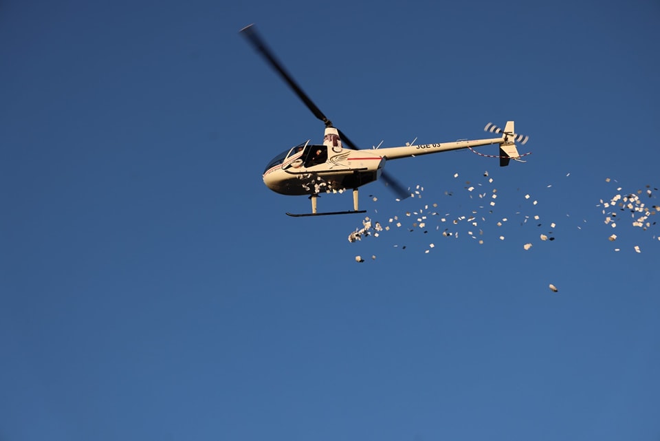 وتخلل الحفل تسيير طائرة مروحية من نوع “هيلوكبتر” حلقت في سماء الجامعة الأردنية، وزينت بأوراق نثرتها الأجواء، فهوت على الحضور، كتب عليها عبارات: ستبقى بوصلتنا فلسطين، وتاجها القدس الشريف (من أقوال جلالة الملك عبدالله الثاني)، عهدي لكم أن يبقى الأردن حرا عزيزا كريما آمنا مطمئنا (من أقوال جلالة الملك عبدالله الثاني)، لا للوطن البديل، لا للتوطين ، لا لتهجير الفلسطينيين ( من أقوال جلالة الملك عبدالله الثاني) وأيضا مع عبد الل?ه يدا بيد، لغد نمضي ولبعد غد.