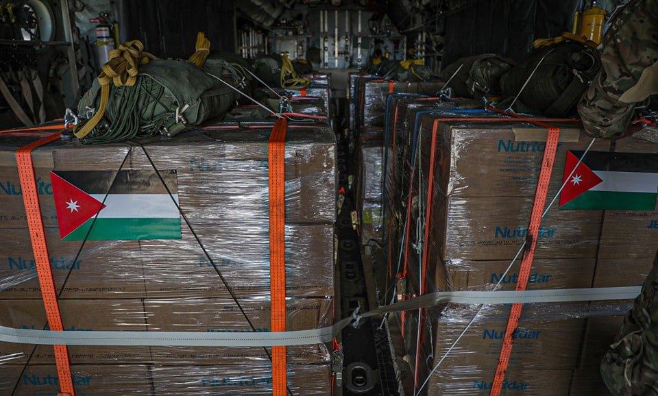 المستقل – واصلت القوات المسلحة الأردنية اليوم الاثنين، إرسال المساعدات الغذائية والإنسانية جواً، بمشاركة عدد من الدول الشقيقة والصديقة، وذلك في أطار جهود المملكة الأردنية الهاشمية لتقديم الدعم العاجل لسكان القطاع وتخفيف معاناتهم.