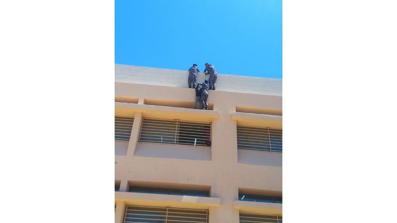 الدفاع المدني ينقذ طفل عالق على كرنيش طابق ثالث بمدرسة في إربد