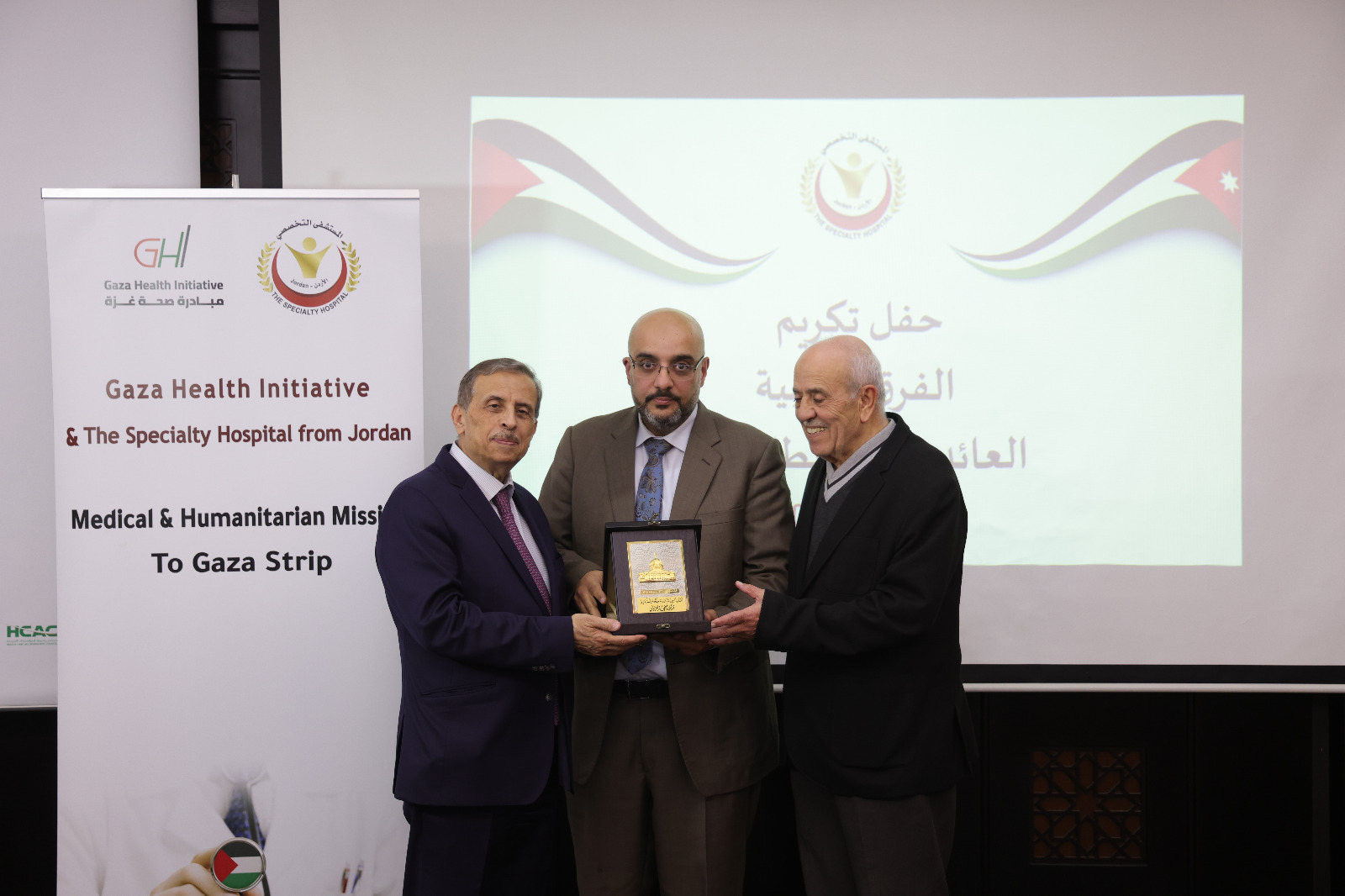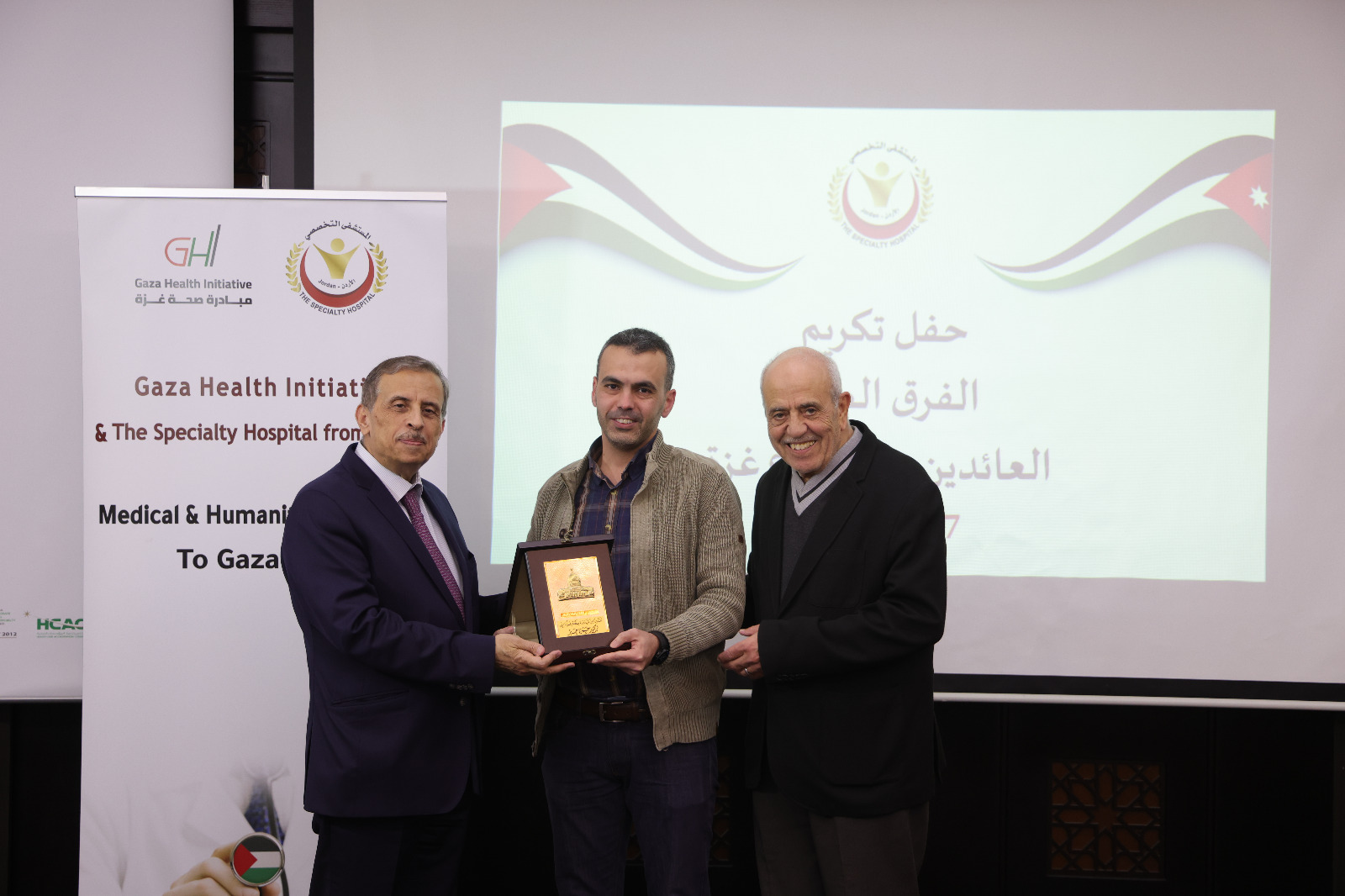 المستقل – كرّم الدكتور فوزي الحموري الرئيس التنفيذي لمبادرة صحة غزة مساء أمس الثلاثاء، عدداً من الأطباء والممرضين العائدين من قطاع غزة إلى جانب تكريم مصور قناة الجزيرة علي العطار الذي يتلقى العلاج في المستشفى التخصصي بعد إصابته بشظايا في الرأس بقصف من جيش الاحتلال، وذلك في حفل أقامته المبادرة في قاعة الملكة رانيا العبدالله في المستشفى التخصصي، وبحضور نقيب الأطباء الأردنيين الدكتور زياد الزعبي.