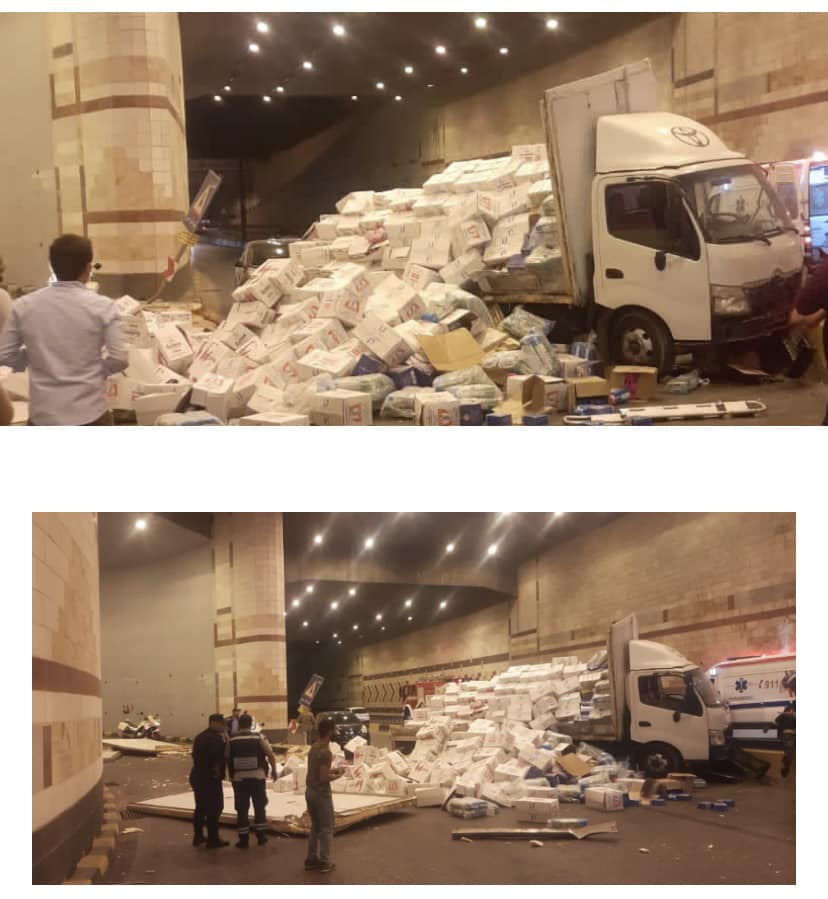 وقالت الادارة بان الحمولة وقعت اثر حادث تدهور تعرضت له المركبة داخل النفق باتجاه السير القادم من منطقة عبدون الى الدوار الرابع .