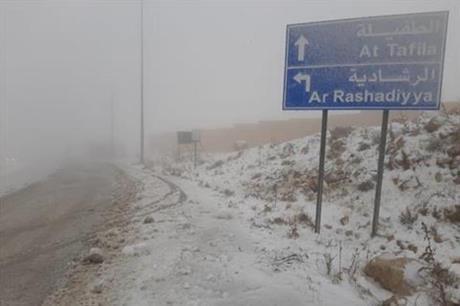 المستقل – شهدت المرتفعات الجنوبية في محافظة الطفيلة، اليوم الخميس، تساقط زخات من الثلج والبرد، تسببت بإغلاق جزئي لطريق الرشادية – التصدير، ومنطقة مثلث القادسية على بعد نحو 35 كيلومترا من مركز المحافظة، إضافة إلى عدد من الطرق الفرعية في لواء بصيرا.
