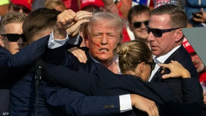 وأصيب ترامب برصاصة في أذنه خلال تجمع حاشد في ولاية بنسلفانيا اليوم الأحد، فيما اعتبرته السلطات محاولة اغتيال، وضرب ترامب قبضته بعد لحظات من الهجوم، وكان وجهه ملطخا بالدم، وقالت حملته إنه بخير بعد الحادث.
