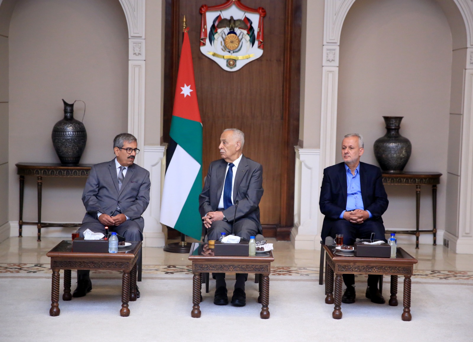 المستقل – التقى رئيس الديوان الملكي الهاشمي يوسف حسن العيسوي، في الديوان الملكي الهاشمي، اليوم الخميس، وفدين يمثل الأول مهنيين ومهندسين وأطباء ومحامين، فيما ضمّ الوفد الثاني عدداً من أبناء عشيرة الرياطي، في لقاءين منفصلين.