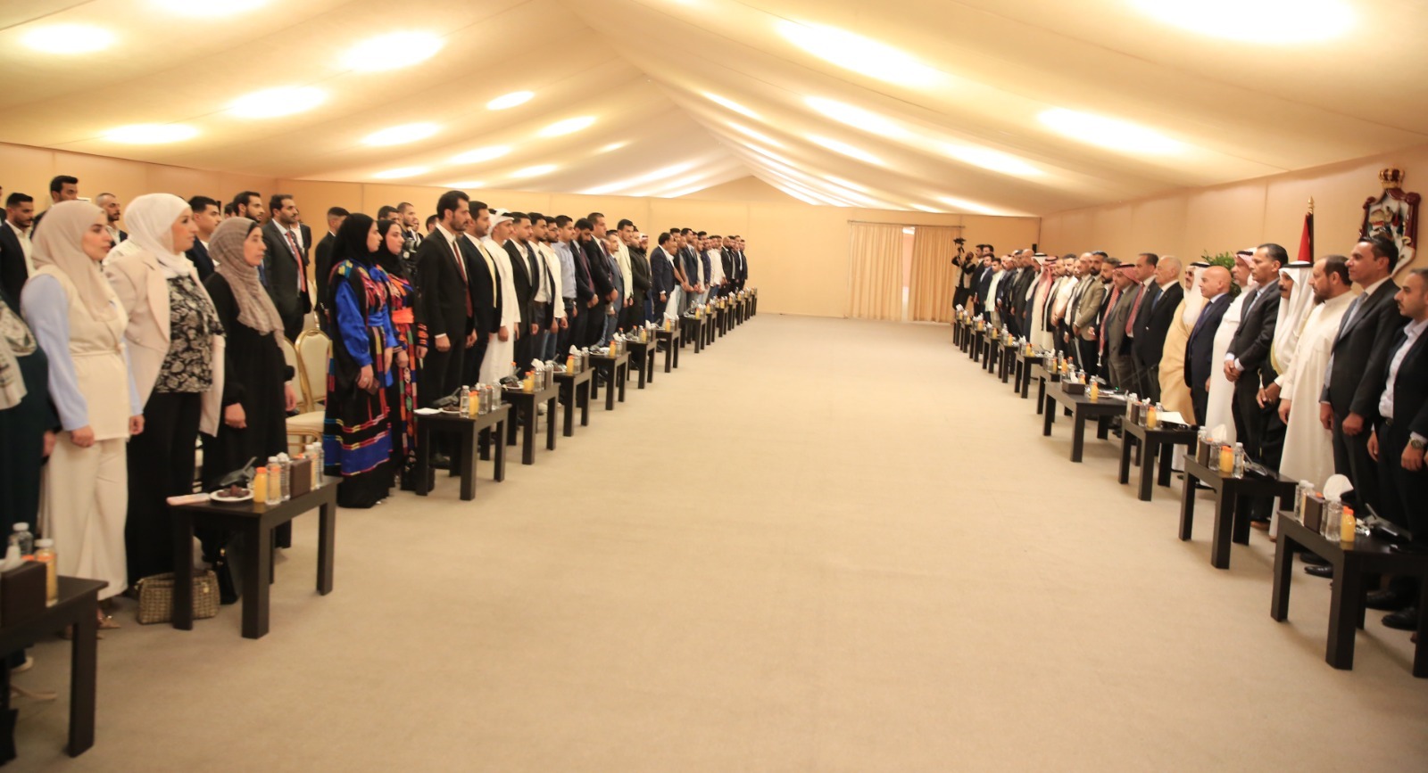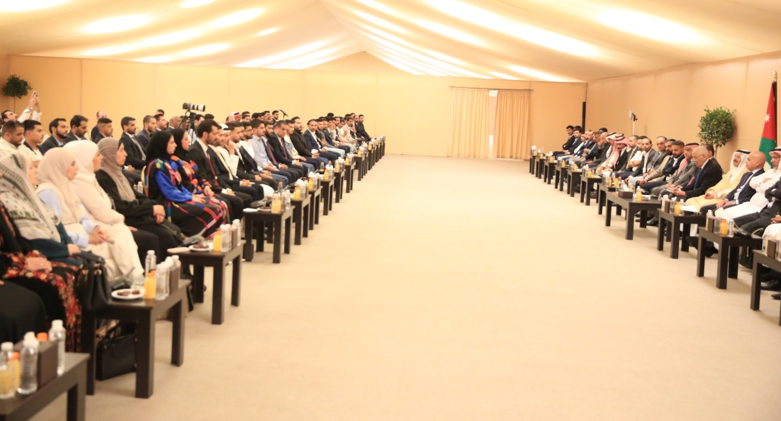 وكان في استقبالهم رئيس الديوان الملكي الهاشمي يوسف حسن العيسوي، الذي أكد أن هذا اللقاء يعبر عن جوهر الوحدة الوطنية القائمة على التماسك والتكافل، وأن الأردن، ومنذ تأسيسه، بُني على مشروع وطني هاشمي، عنوانه الإنسان، ومرجعيته المبادئ.