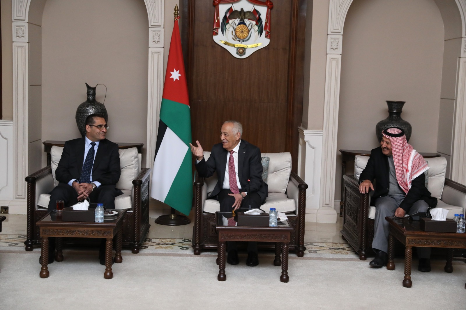 المستقل – التقى رئيس الديوان الملكي الهاشمي يوسف حسن العيسوي، اليوم الاثنين، في الديوان الملكي الهاشمي، وفداً من أبناء عشيرة الكردي، وذلك بحضور مستشار جلالة الملك لشؤون العشائر كنيعان البلوي.