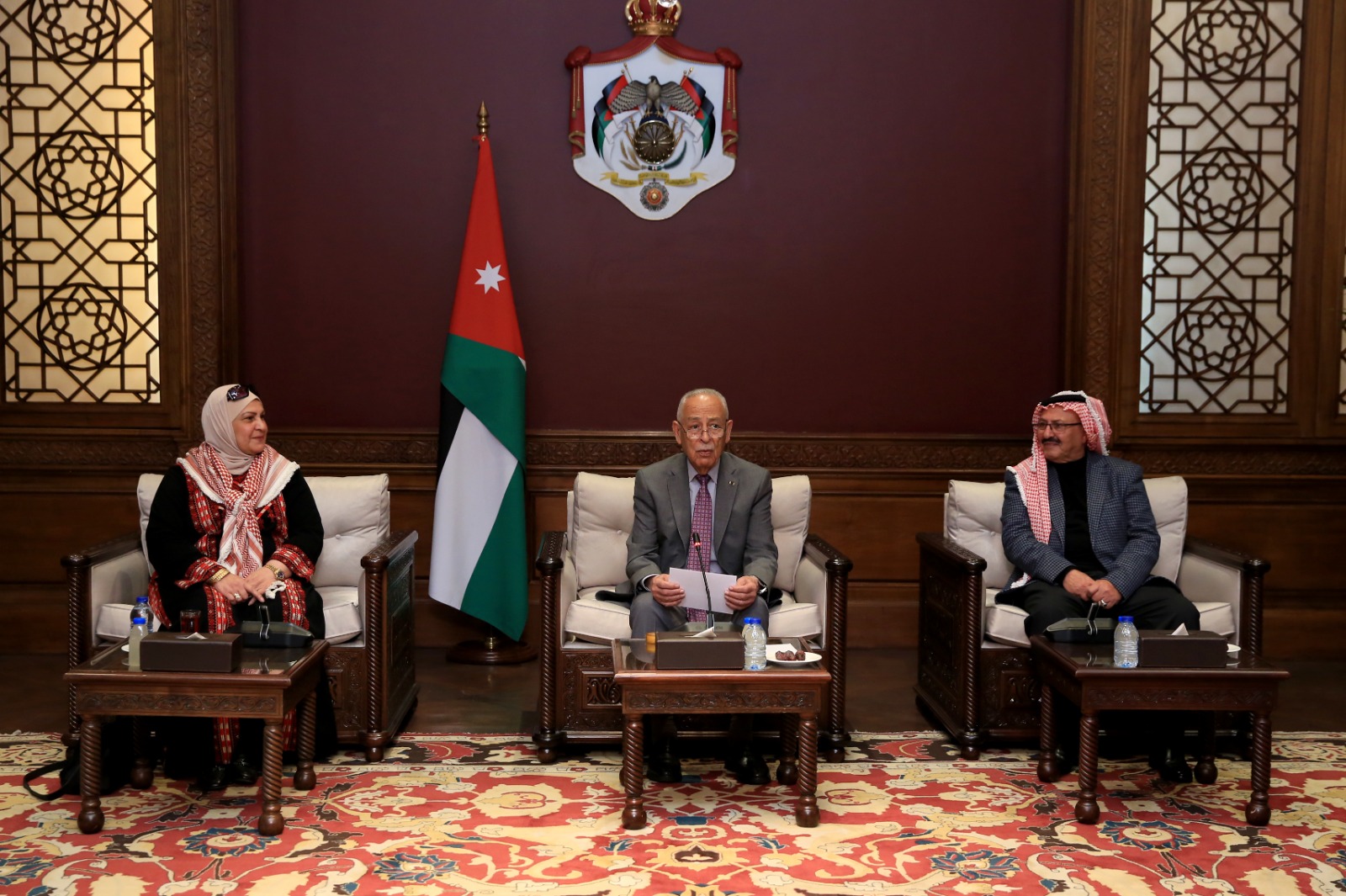 جاء ذلك خلال لقائه في الديوان الملكي الهاشمي، اليوم الخميس، بحضور مستشار جلالة الملك لشؤون العشائر كنيعان البلوي، وفدًا نسائيًا من سيدات الكرك القاطنات في محافظة الزرقاء، ووفدًا يمثل فريق “ملهمون للعمل الشبابي والتطوعي”، في لقاءين منفصلين.