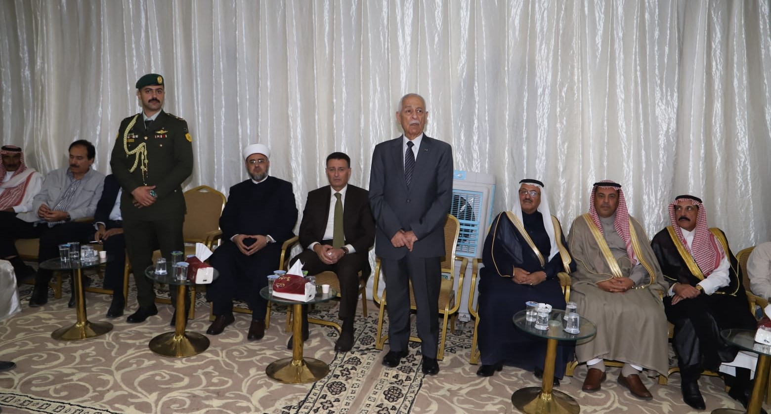 وفي منطقة حي الزهور بمحافظة المفرق، نقل العيسوي، خلال زيارته بيت عزاء المرحوم المحامي دوجان منور الخزاعلة، تعازي ومواساة جلالة الملك وسمو ولي العهد، إلى ذوي الفقيد وعموم عشيرة الخزاعلة، سائلا المولى عز وجل أن يتغمده بواسع رحمته.
