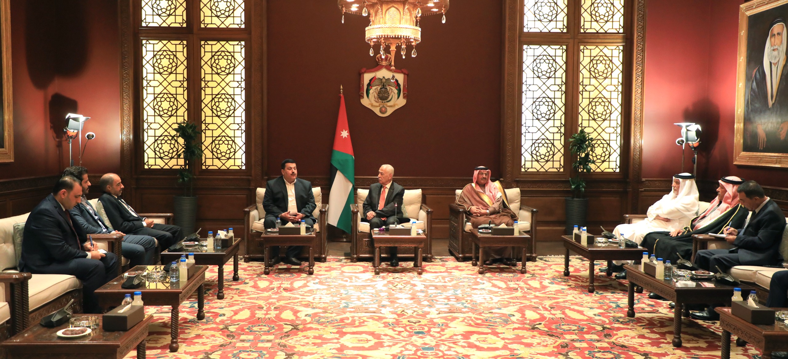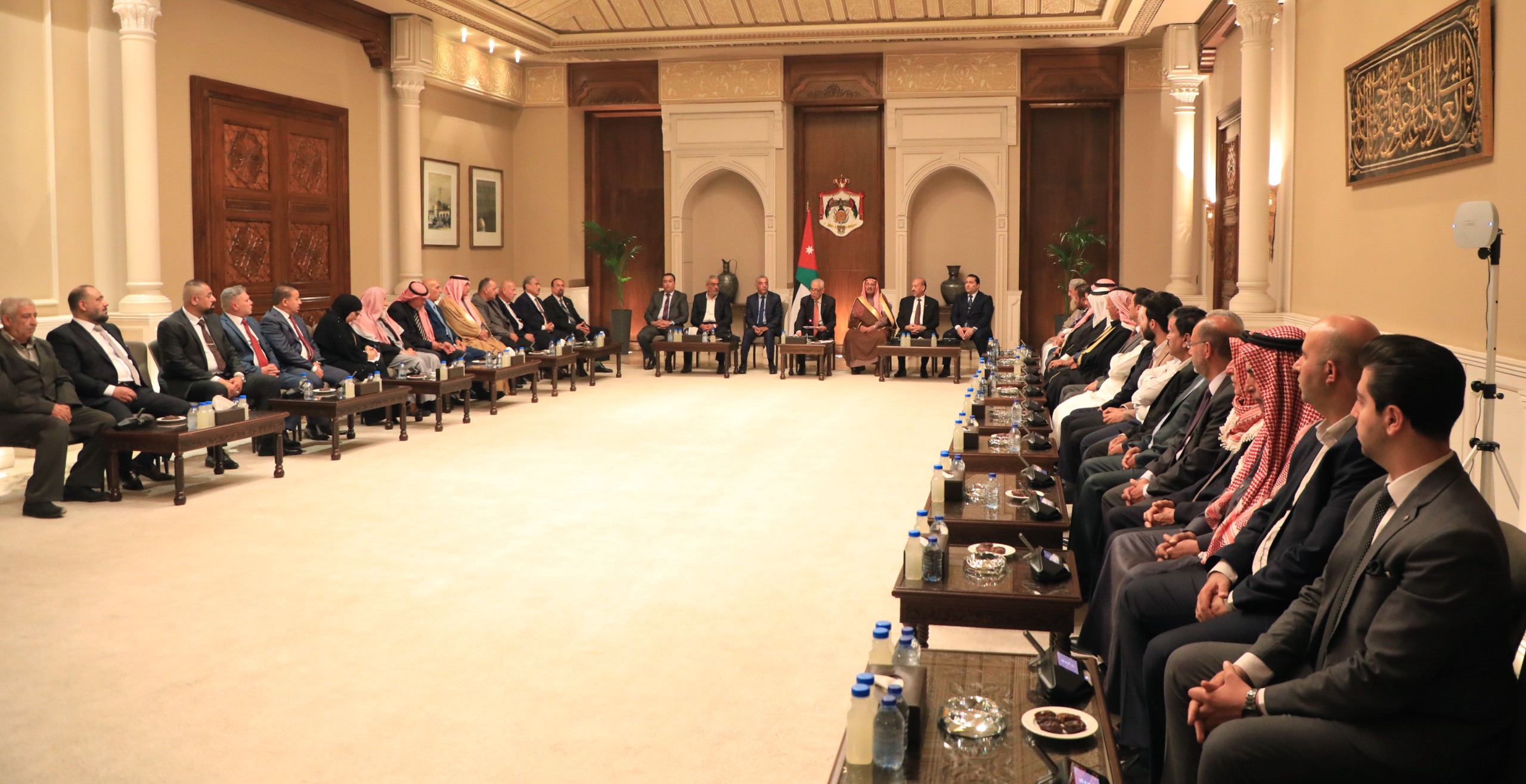 جاء ذلك خلال لقائه، اليوم الأربعاء في الديوان الملكي الهاشمي، وبحضور مستشار جلالة الملك لشؤون العشائر كنيعان عطا البلوي، ثلاثة وفود مجتمعية من أنباء منطقة مقبلة في محافظة و من أبناء من قبيلة الحمايدة في محافظة الطفيلة و من أبناء عشائر الفالوجة بالأردن، في ثلاثة لقاءات منفصلة.