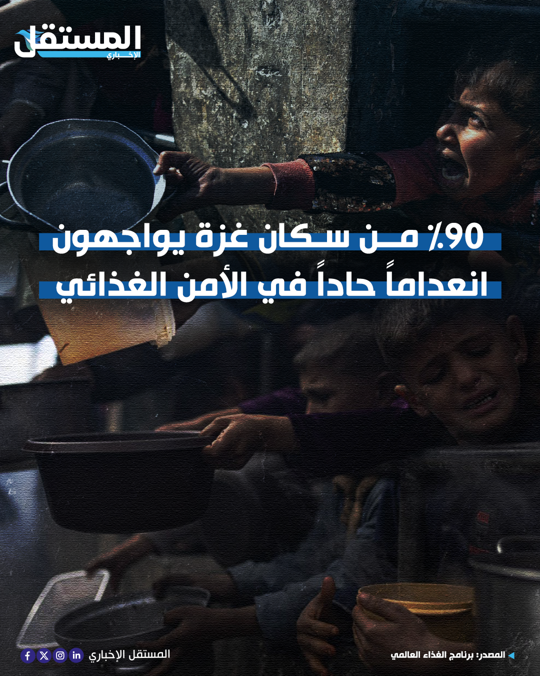 المستقل – أكد برنامج الغذاء العالمي التابع للأمم المتحدة أن أكثر من 90 بالمئة من سكان غزة سيواجهون بحلول شهر تشرين الثاني المقبل انعداما حادا في الأمن الغذائي.