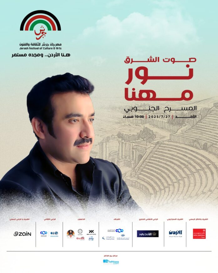 المستقل – من حلب إلى قرطاج، ومن ليالي “ليلة الزمن الجميل” إلى قلب جرش التاريخي ، يأتي نور مهنا ليجدد عهداً مع الطرب الأصيل، بصوته القوي ونفَسه العميق، في سهرة لا تُنسى على خشبة المسرح الجنوبي.