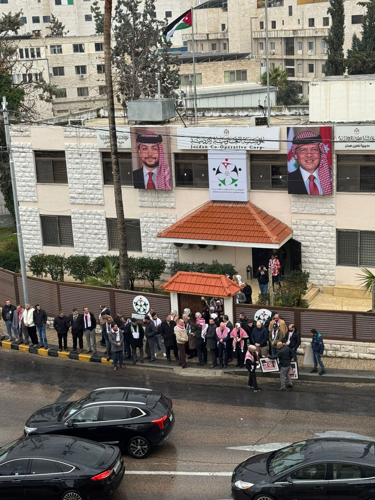 وشهدت الوقفة مشاركة واسعة من موظفي المؤسسة التعاونية، والذين رفعوا الأعلام الأردنية وصور جلالة الملك عبدالله الثاني، وولي العهد سمو الأمير الحسين، حفظهما الله ورعاهما، مؤكدين على وحدة الصف الأردني في مواجهة محاولات تهجير الغزيين إلى الأردن.
