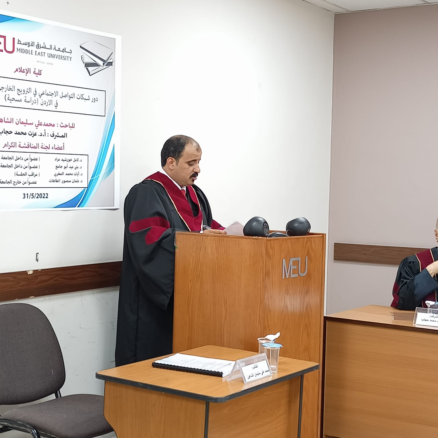 الرئيسيةتعليم وجامعاتالماجستير في الإعلام للباحث محمد الشاهين من جامعة الشرق الأوسط