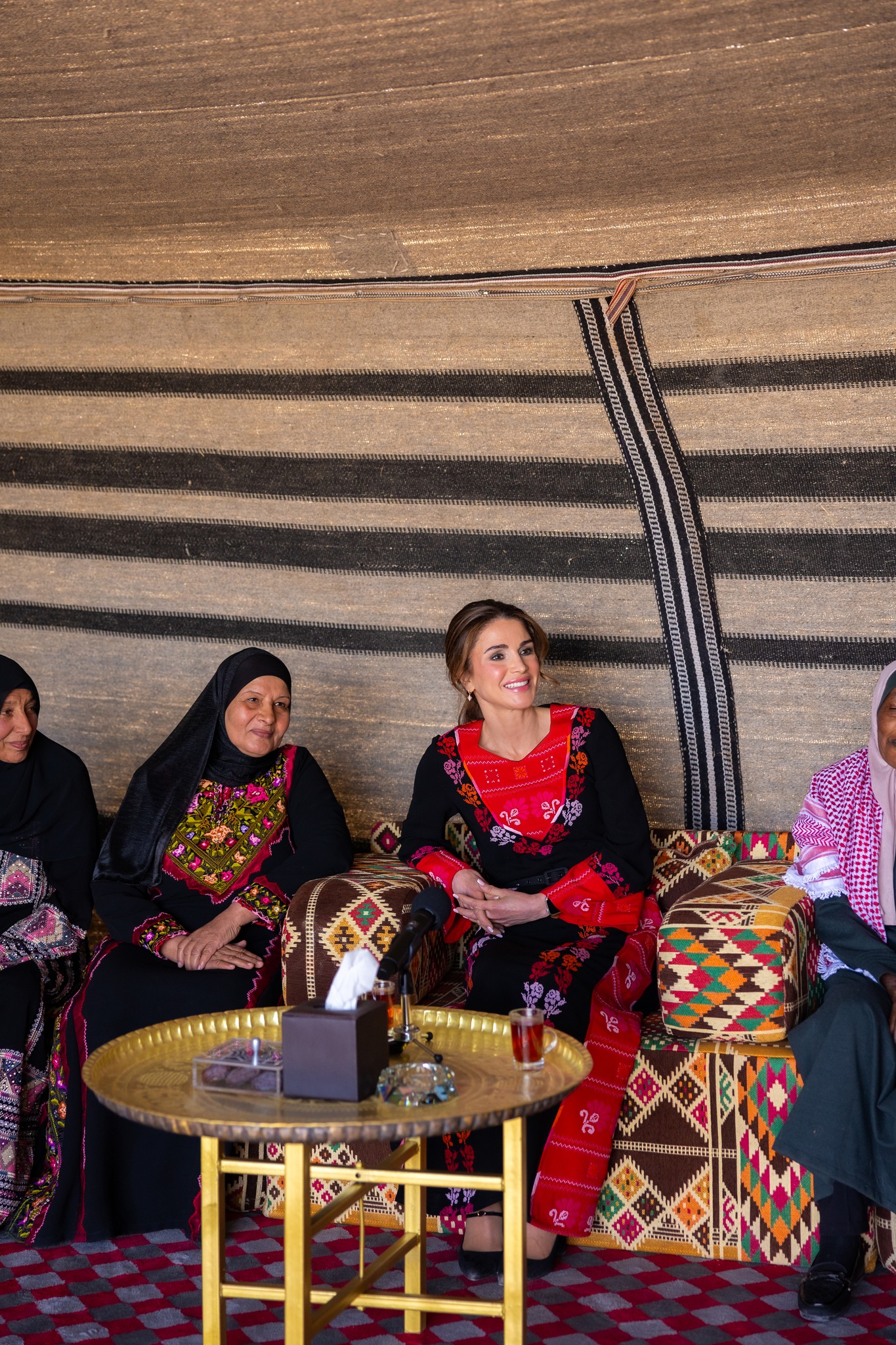 وخلال لقاء جلالتها، مع عدد من مستفيدات برامج تمكين المجتمع، استمعت إلى أحاديثهن حول مشاريعهن الممولة بمنح مقدمة من مؤسسة نهر الأردن بدعم الديوان الملكي الهاشمي ومجلس محافظة العقبة، والتي ساهمت في تحسين واستدامة دخل أكثر من 100 أسرة في المنطقة وتنوعت المشاريع في المجالات الزراعية والخدمية والحرفية.