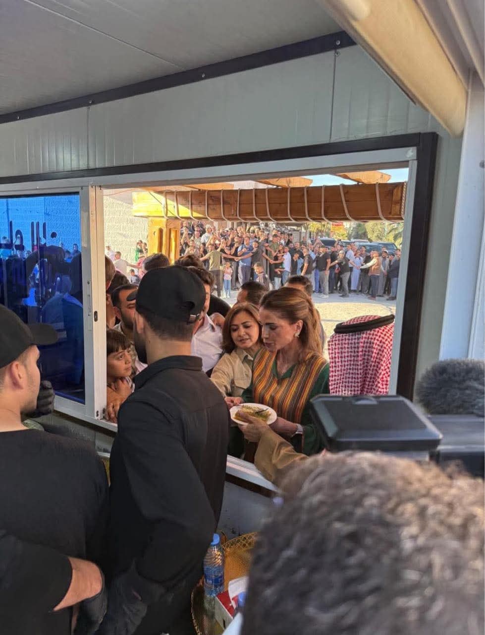 ودخلت جلالتها إلى أحد أبرز محلات الحلويات وتناولت “هريسة معان” المشهورة.