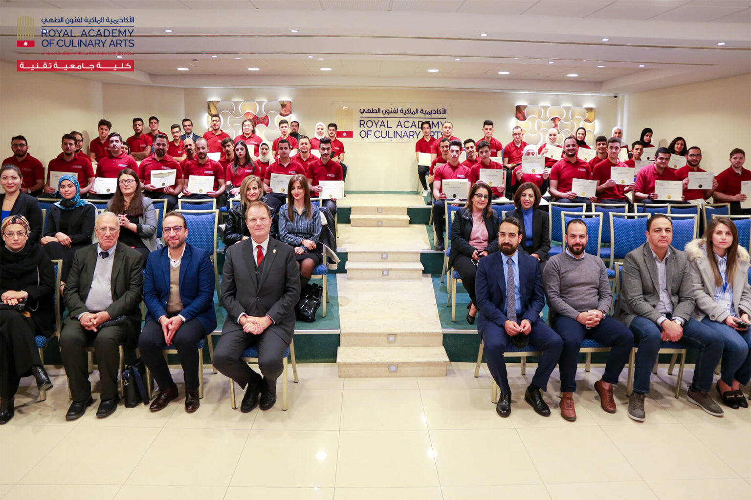 المستقل- احتفلت الأكاديمية الملكية لفنون الطهي اليوم الثلاثاء، بتخريج 63 طالبا وطالبة من الشباب الأردني والسوري من برنامج التدريب المهني، والذي نفذ من قبل الأكاديمية بدعم من البنك الأوروبي لإعادة الإعمار والتنمية، ووزارة الخارجية والتنمية البريطانية.