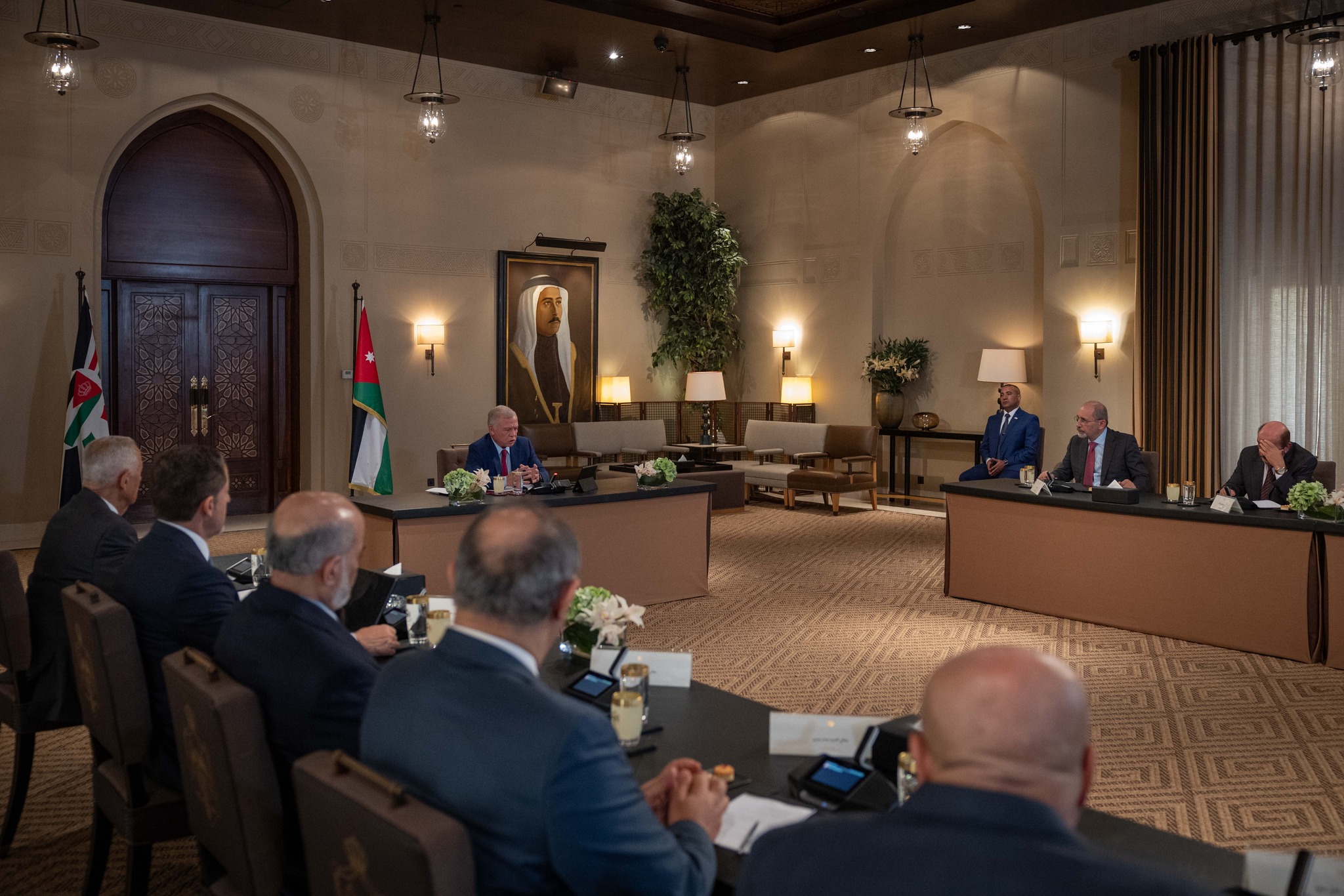 وحضر اللقاء رئيس الديوان الملكي الهاشمي يوسف حسن العيسوي، ونائب رئيس الوزراء ووزير الخارجية وشؤون المغتربين أيمن الصفدي، ومدير مكتب جلالة الملك، المهندس علاء البطاينة.