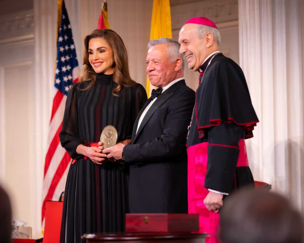 المستقل – تسلم جلالة الملك عبدالله الثاني وجلالة الملكة رانيا العبدالله، أمس الاثنين في نيويورك، جائزة “الطريق إلى السلام”، التي تُمنح من قبل مؤسسة الطريق إلى السلام التابعة لبعثة الفاتيكان في الأمم المتحدة.