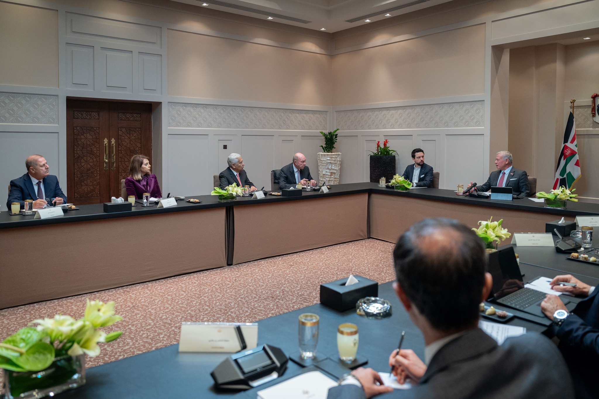 كما أكد جلالة الملك، بحضور سمو الأمير الحسين بن عبدالله الثاني ولي العهد، أهمية وقف الحرب الإسرائيلية على قطاع غزة وتحقيق تهدئة شاملة بالمنطقة.