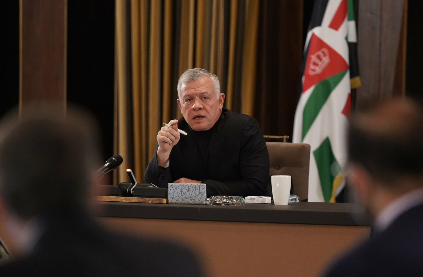الملك، في اجتماع عبر الاتصال المرئي، يوجه الحكومة إلى الاستمرار في الجهود الإقليمية والدولية لوقف الخطوات الإسرائيلية التصعيدية وبلورة موقف دولي ضاغط ومؤثر.