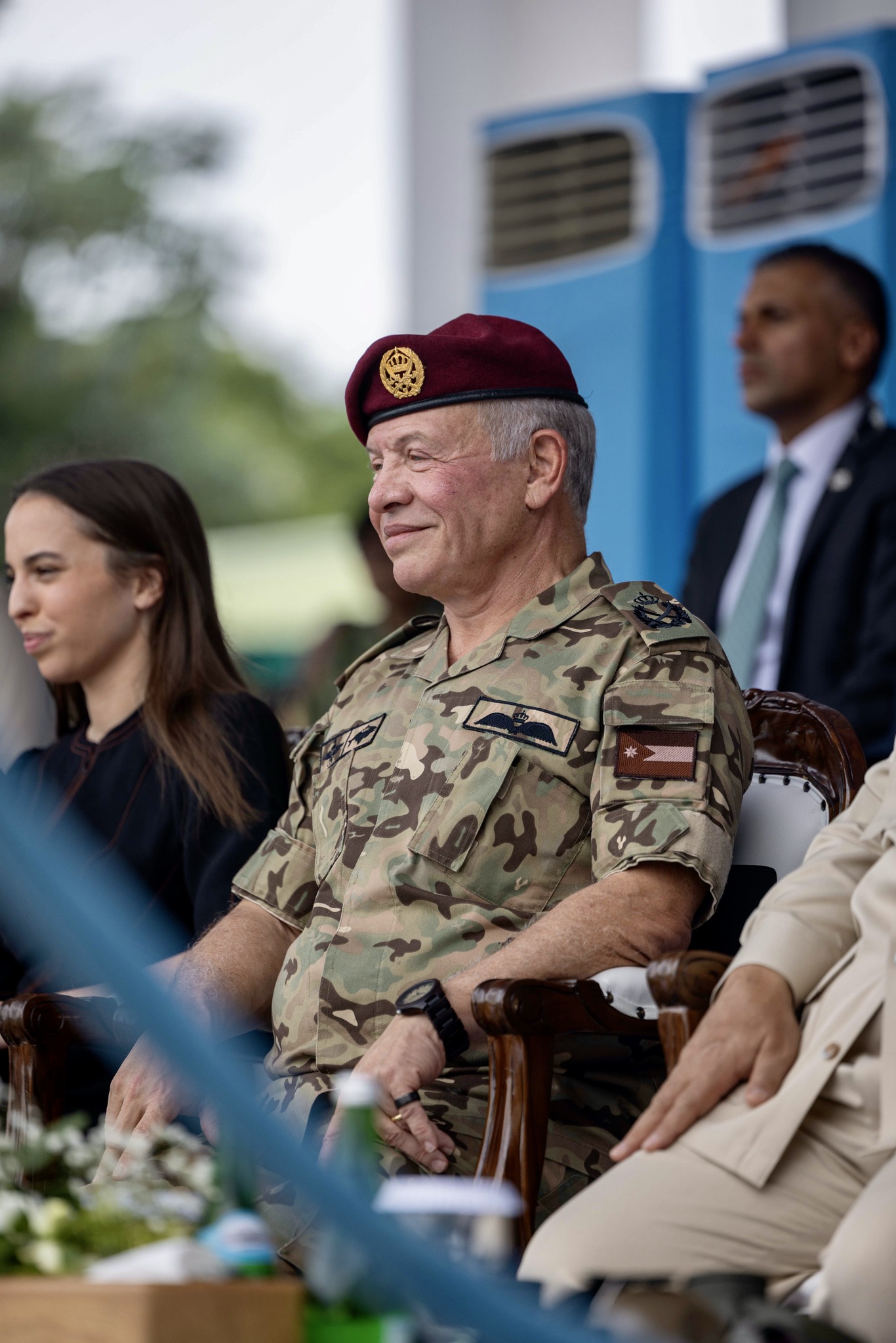 وحضر التمرين سمو الأميرة سلمى بنت عبدالله الثاني، وسمو الأمير غازي بن محمد، كبير مستشاري جلالة الملك للشؤون الدينية والثقافية، المبعوث الشخصي لجلالته ونائب رئيس الوزراء ووزير الخارجية وشؤون المغتربين أيمن الصفدي ورئيس هيئة الأركان المشتركة اللواء الركن يوسف أحمد الحنيطي ومدير مكتب جلالة الملك المهندس علاء البطاينة.