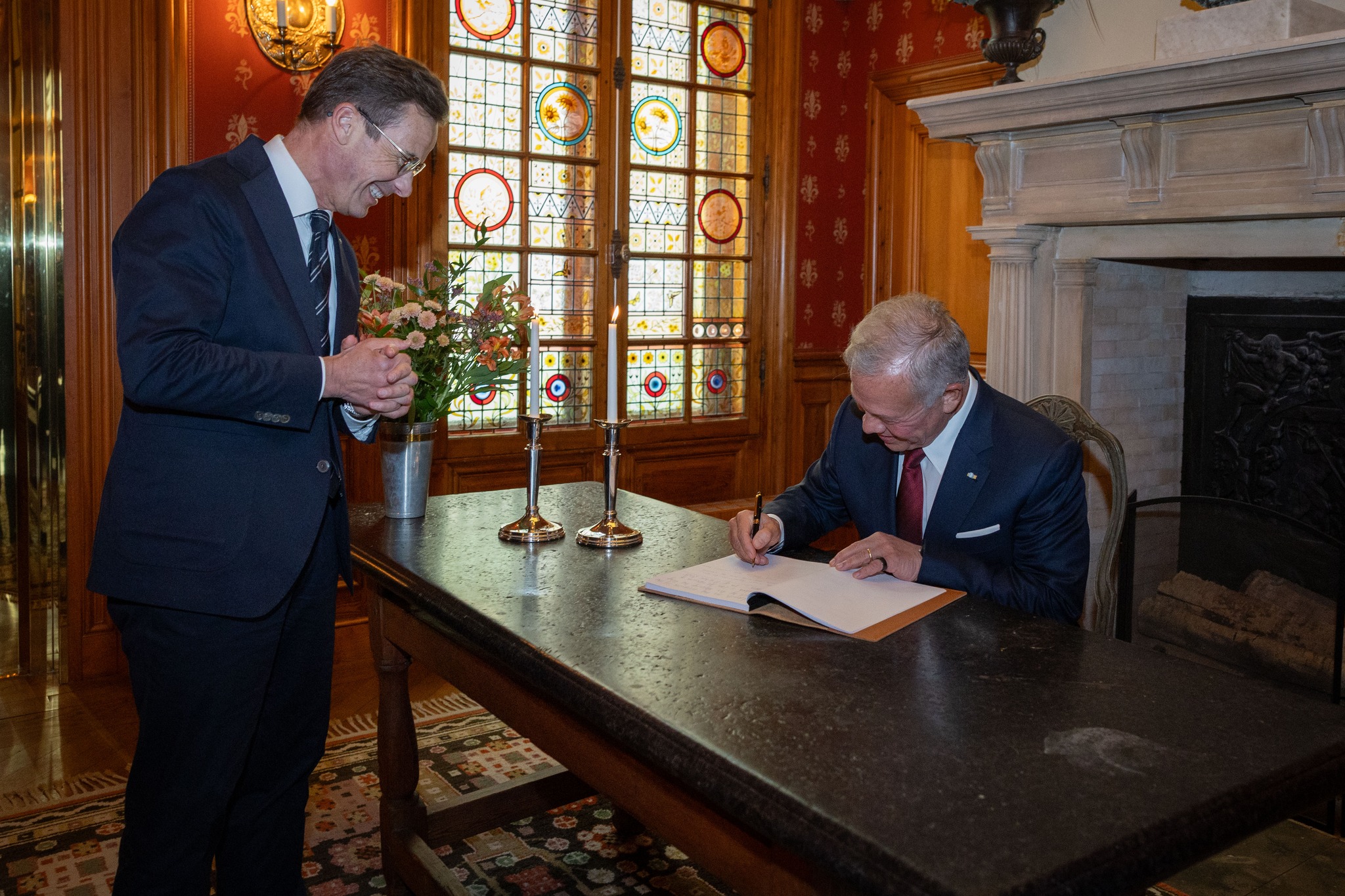 وبحث جلالة الملك ورئيس الوزراء السويدي، خلال لقاء ثنائي تبعه موسع، أهمية توسيع التعاون بين الأردن والسويد في عدة مجالات، كالتجارة، والاستثمار، والسياحة، والأمن السيبراني، ومكافحة الإرهاب والتعاون العسكري.