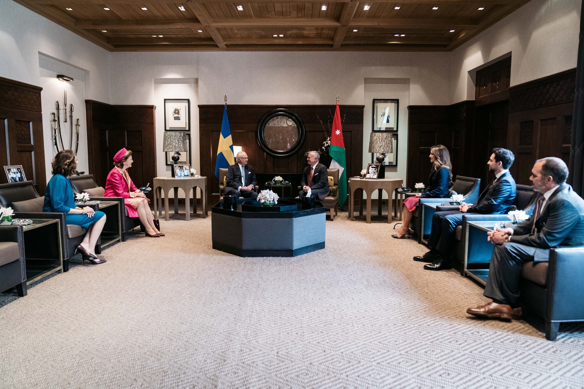 وعقد جلالتاهما مباحثات ثنائية وموسعة بحضور جلالة الملكة رانيا العبدالله، وسمو الأمير الحسين بن عبدالله الثاني ولي العهد، وجلالة الملكة سيلفيا، ملكة السويد، وسمو الأمير علي بن الحسين، وسمو الأميرة ريم علي.