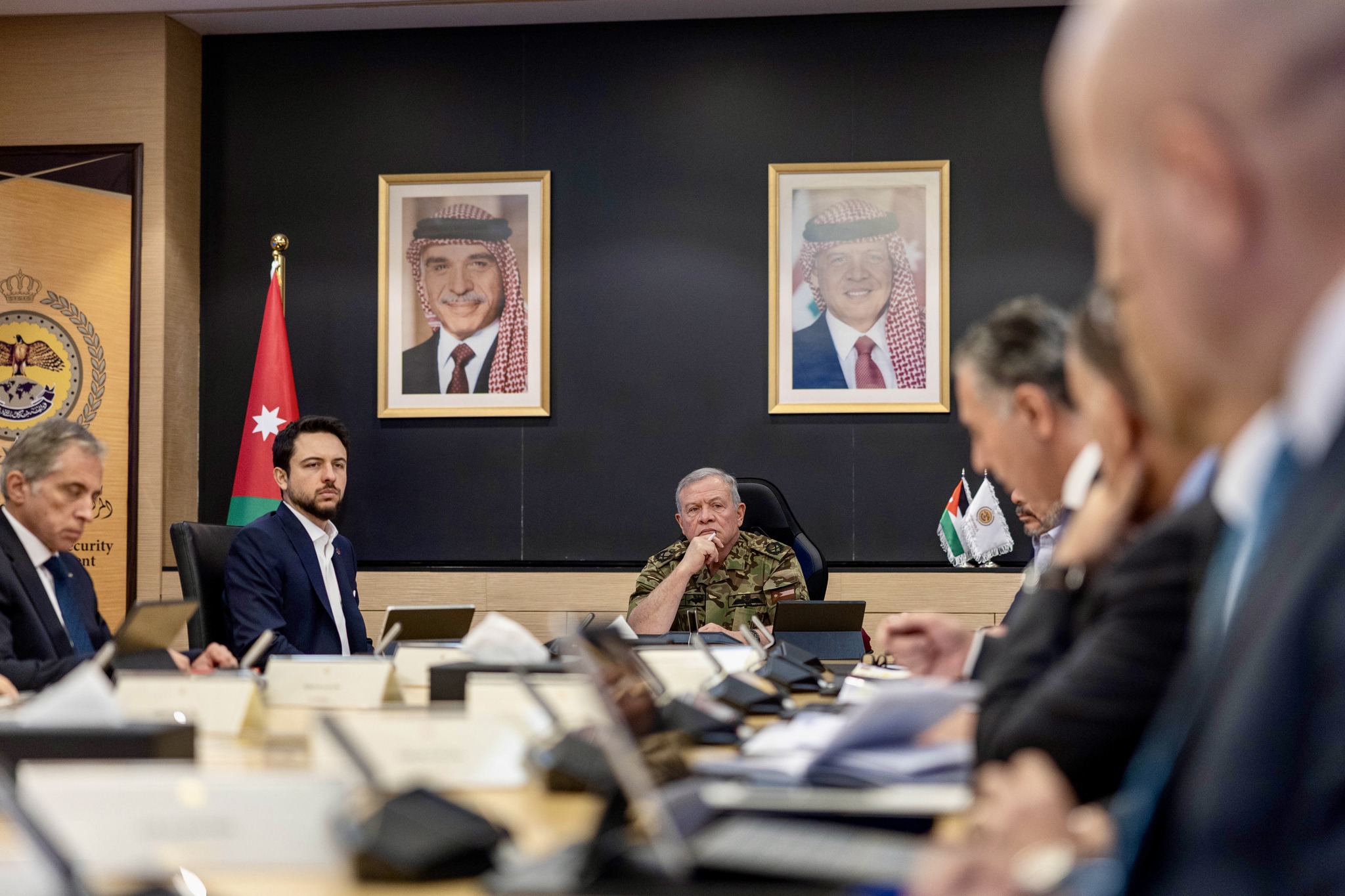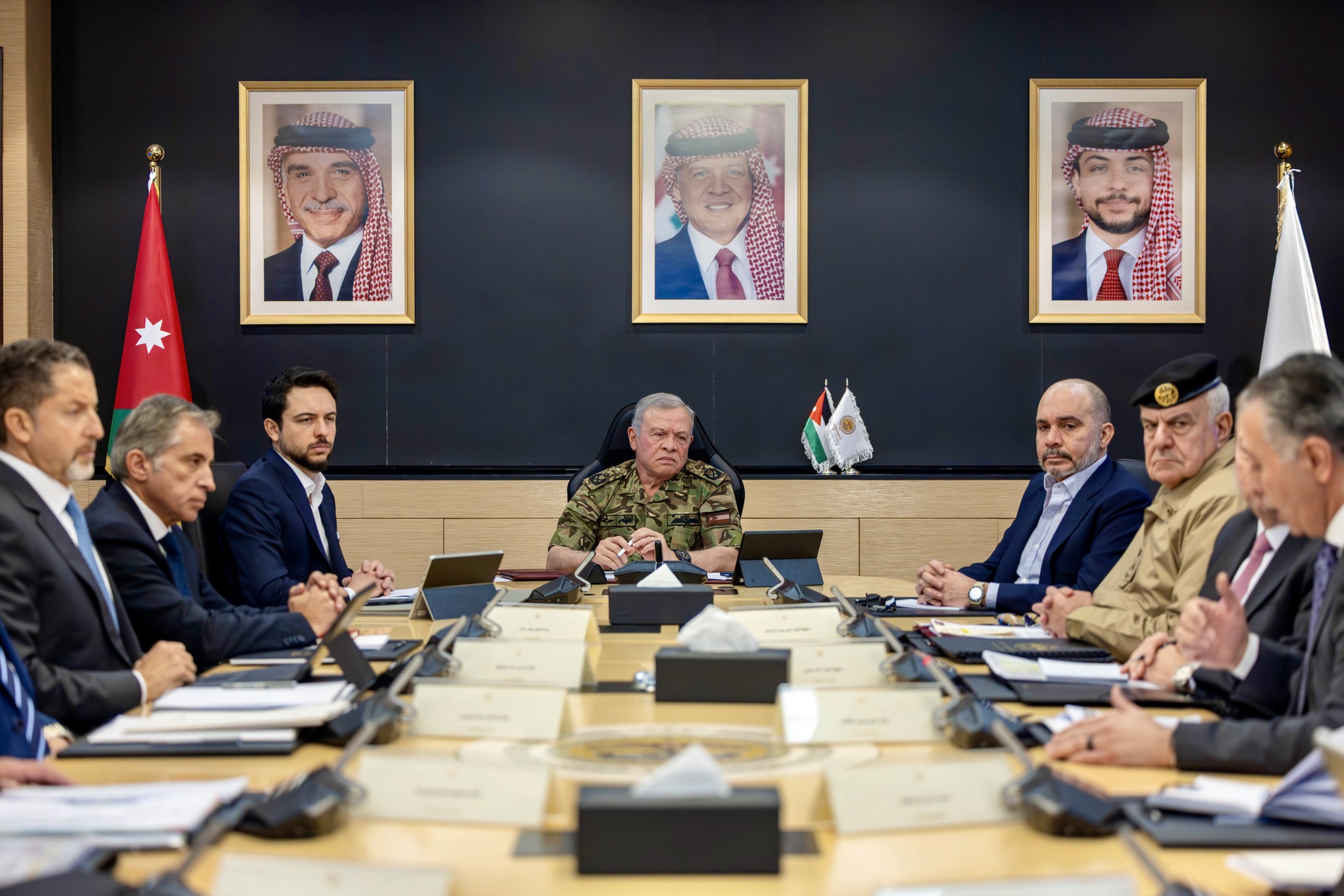 واستمع جلالته، خلال الاجتماع الذي حضره سمو الأمير الحسين بن عبدالله الثاني ولي العهد، إلى إيجاز حول إجراءات التعامل مع الاعتداءات التي تستهدف الأردن ودول المنطقة، بما يحفظ أمن المملكة وسلامة مواطنيها.