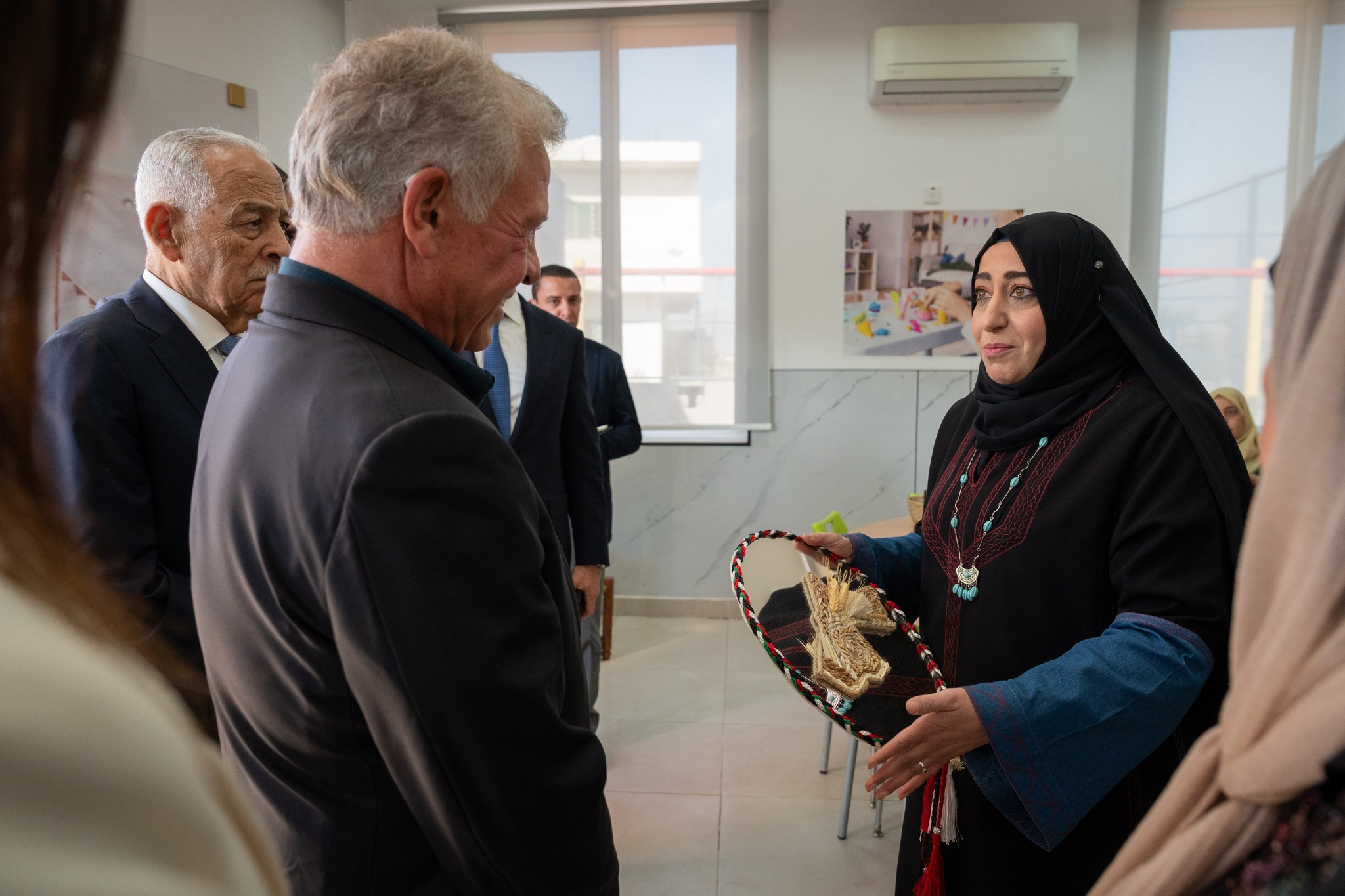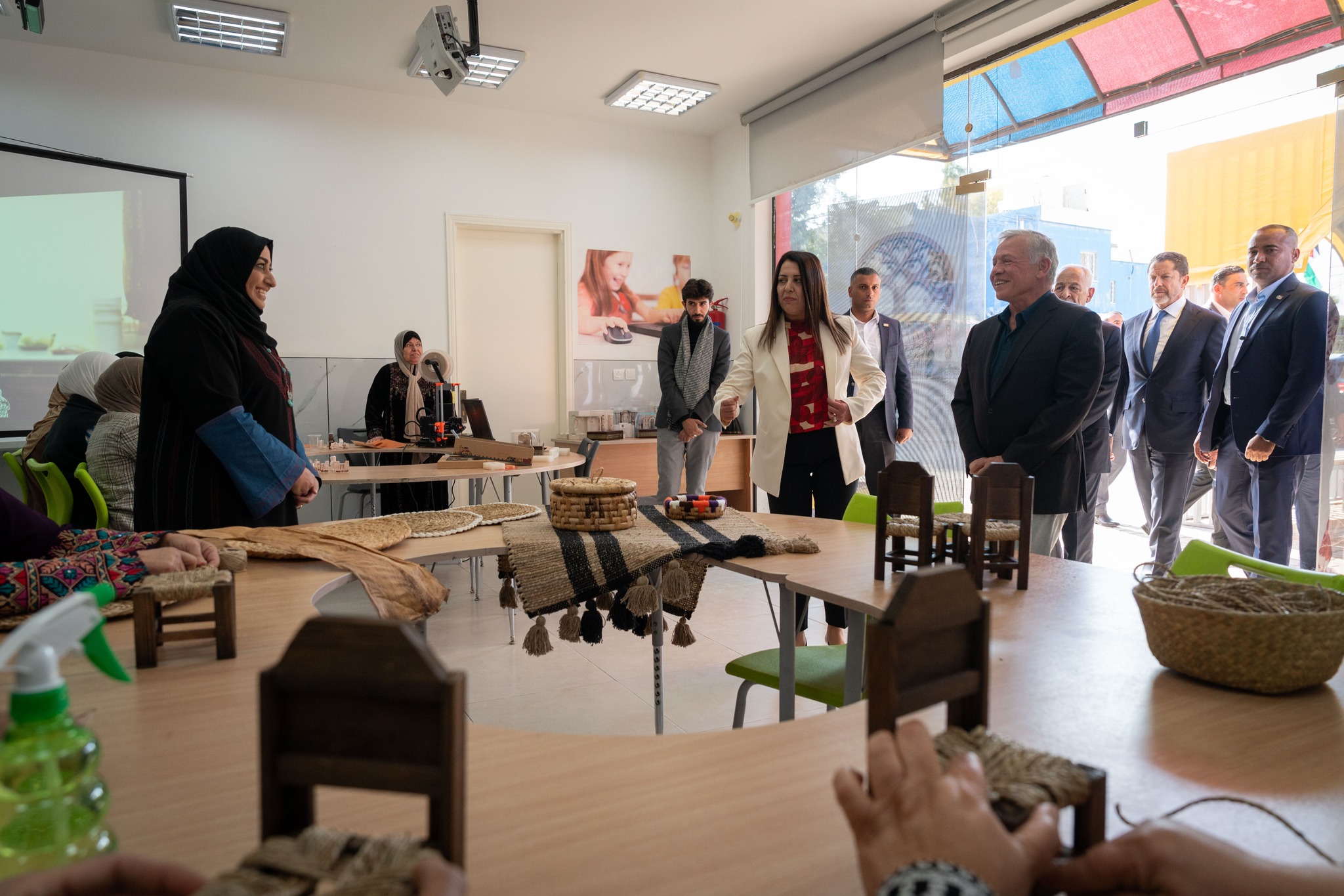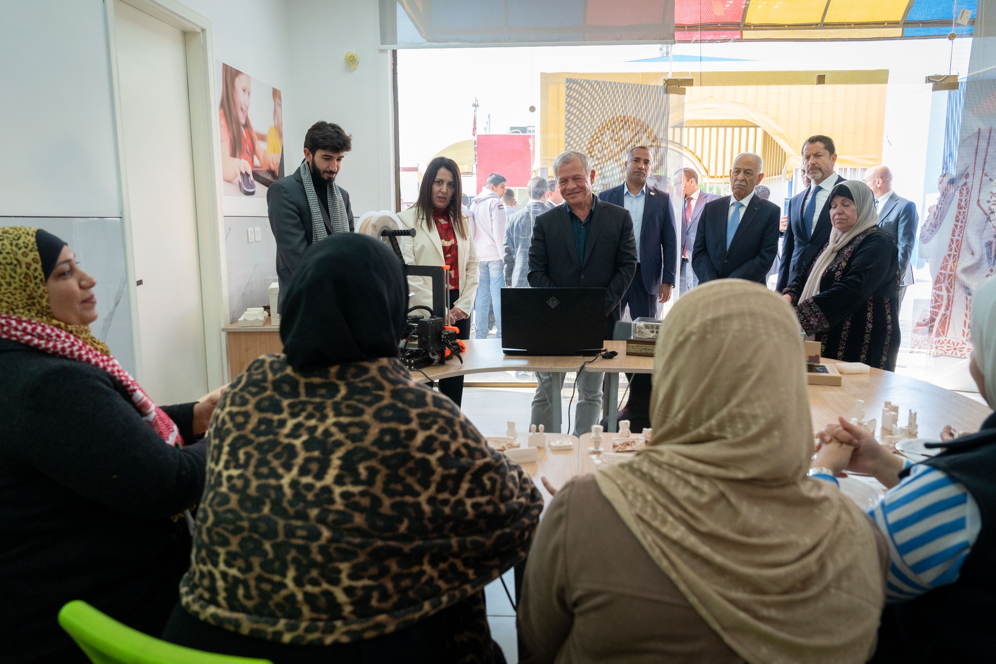 كما اطلع جلالته على ورشة عمل للأعمال اليدوية والطباعة ثلاثية الأبعاد، بمشاركة نساء المنطقة، ينظمها المركز بالشراكة مع جمعية ذات النطاقين الخيرية.