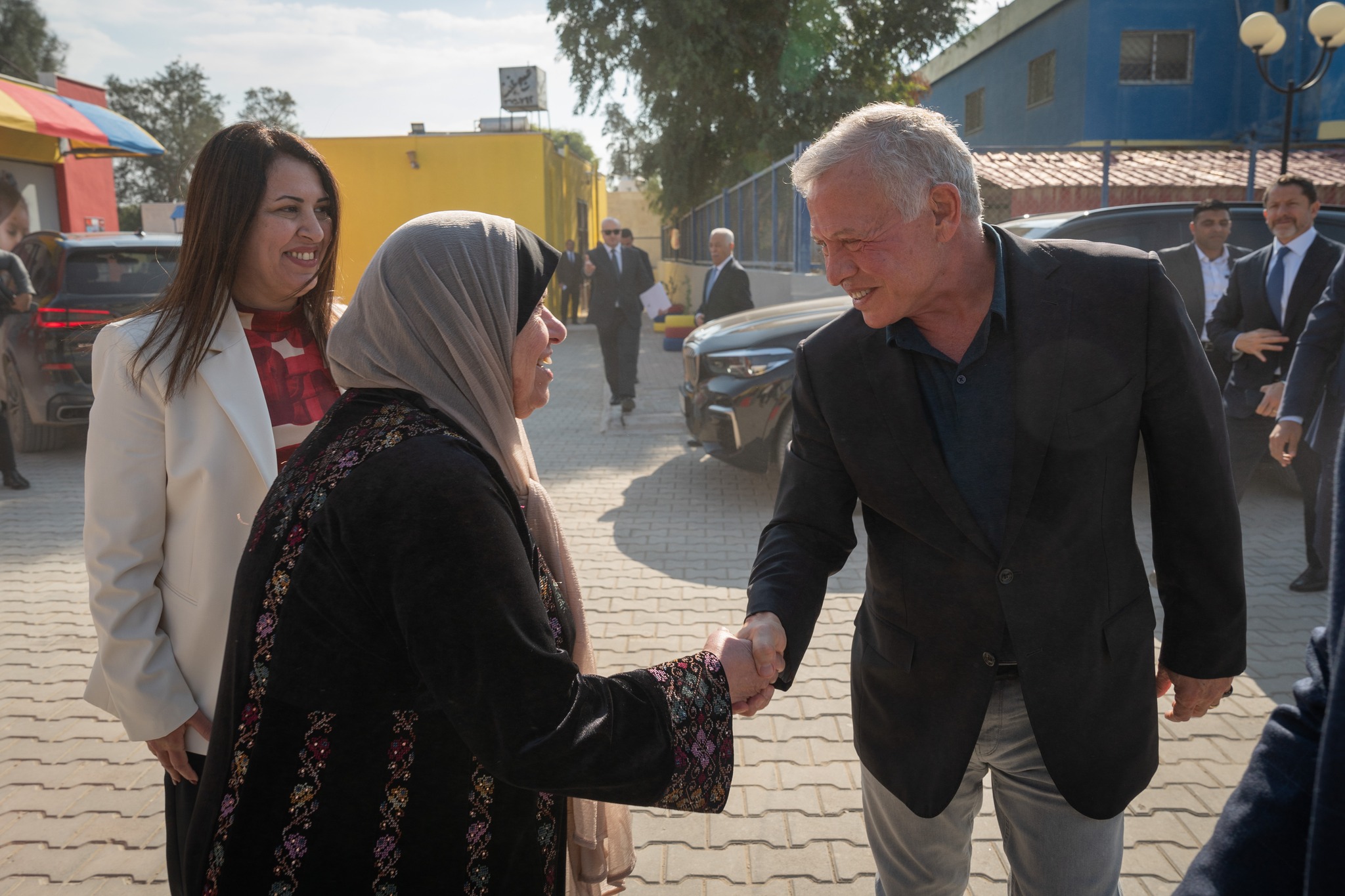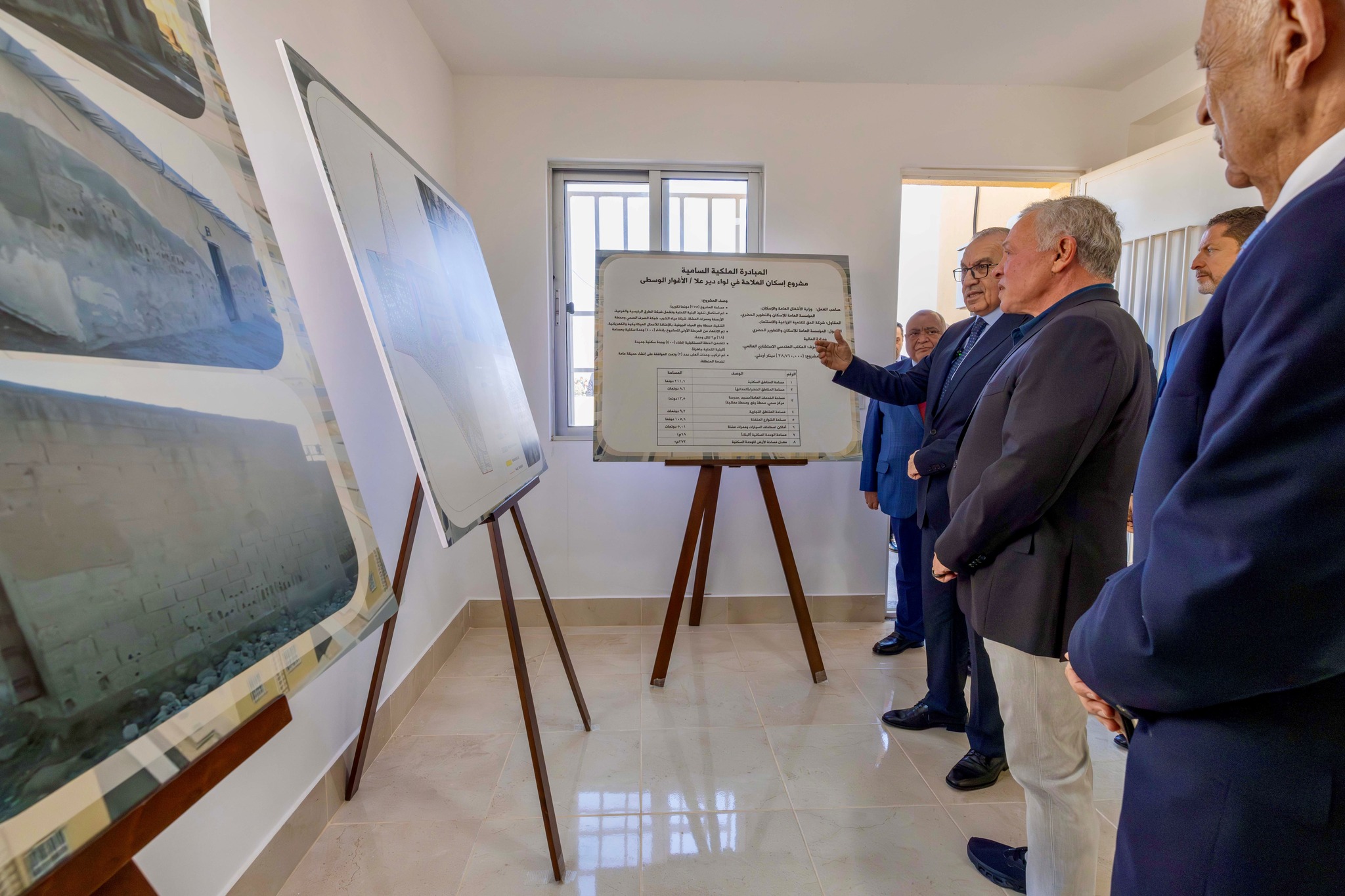 وخلال تجوال جلالته في أجزاء من المشروع، استمع إلى شرح من وزير الأشغال العامة والإسكان المهندس ماهر أبو السمن، أشار فيه إلى أن المساكن توفر حياة كريمة ومستقرة وبيئة آمنة لأهالي المنطقة التي تعاني من تحديات بيئية مثل ارتفاع نسبة ملوحة التربة.