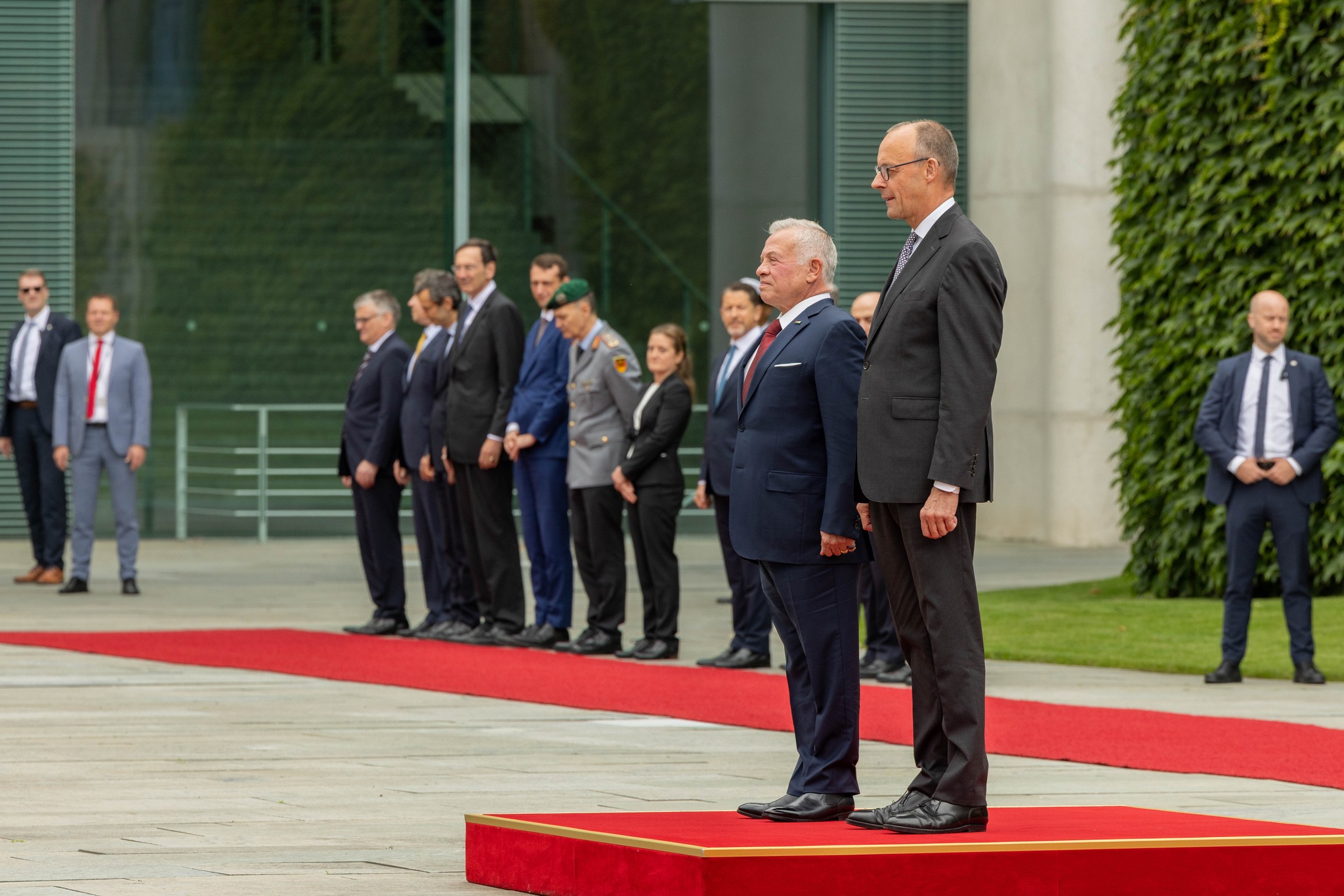 وأشار جلالته إلى أهمية العمل المشترك للدفع باتجاه وقف الحرب على غزة، وإنهاء التصعيد من أجل توفير أفق سياسي يمهد الطريق للسلام العادل والشامل على أساس حل الدولتين، مثمنا دعم ألمانيا لحل الدولتين.