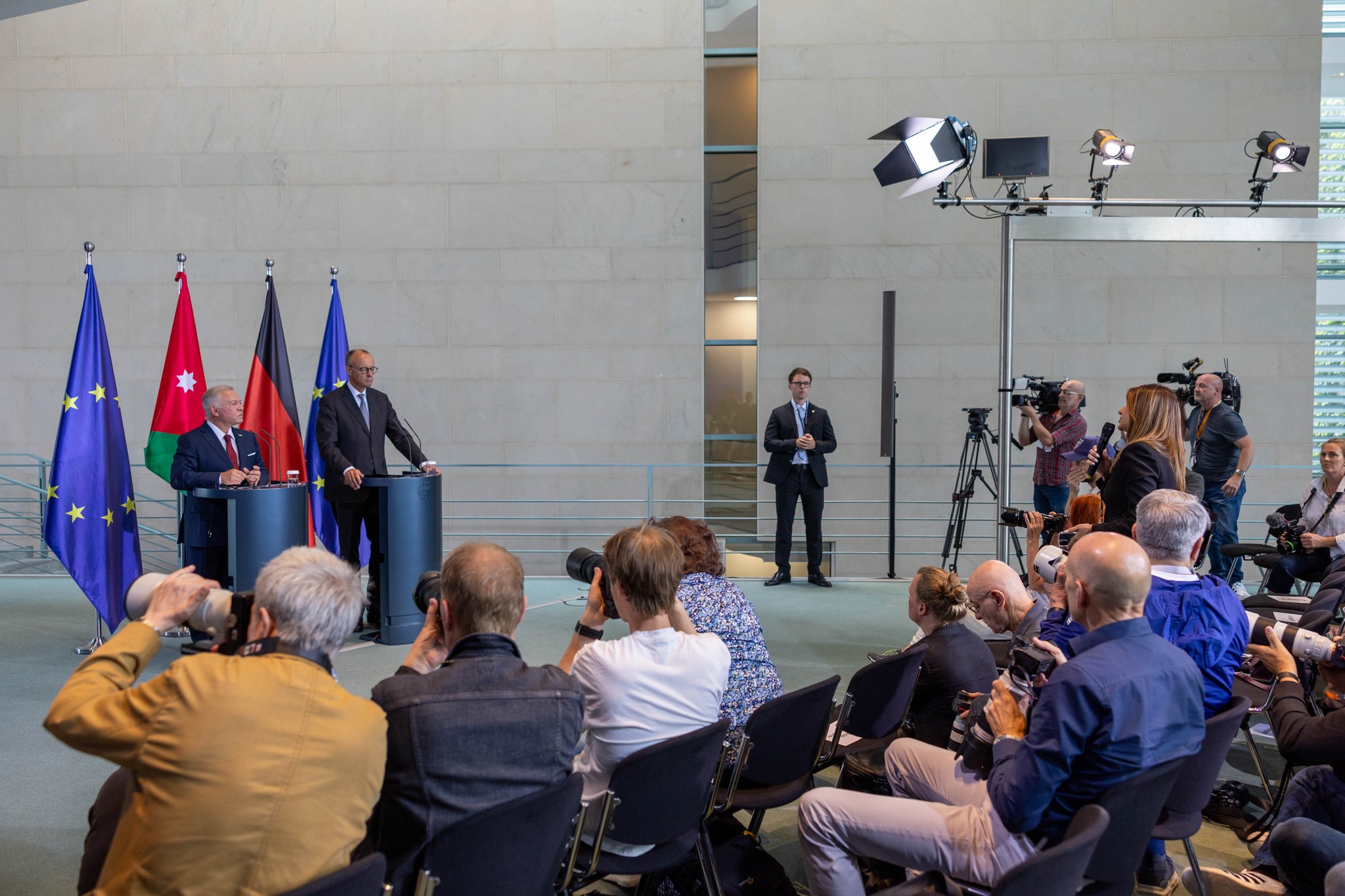 وأضاف “الأردن هو نقطة ارتكاز في منطقة غير مستقرة ولا تنعم بالسلام، ولهذا السبب أود أن أشكر التزام جلالتكم وأود أن أشكر الأردن. أنتم محل تقدير كبير في ألمانيا”.