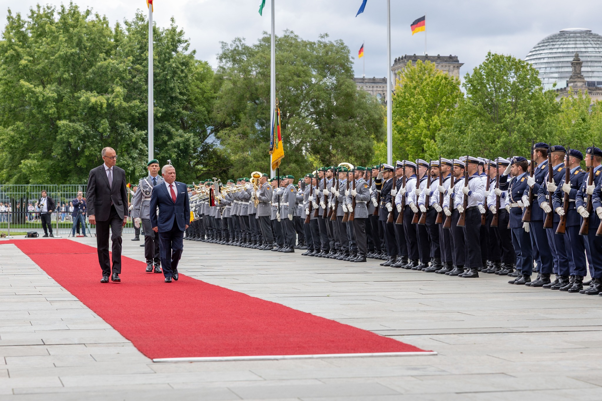 وأشاد جلالته بدعم ألمانيا القوي لجهود الأردن في سبيل تحقيق الاستقرار في المنطقة، وتوفير المساعدات أينما دعت الحاجة.